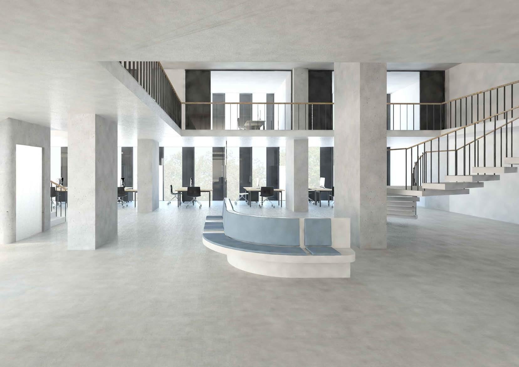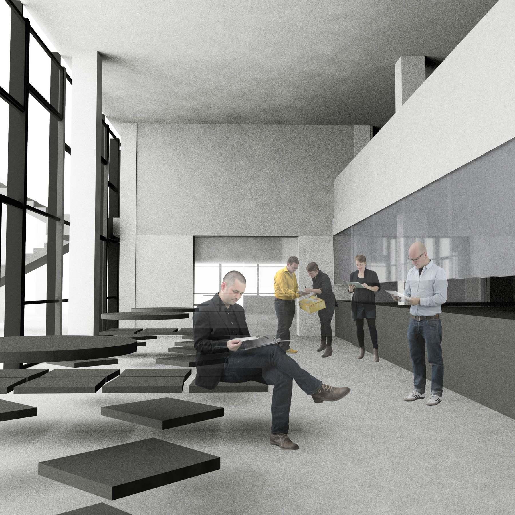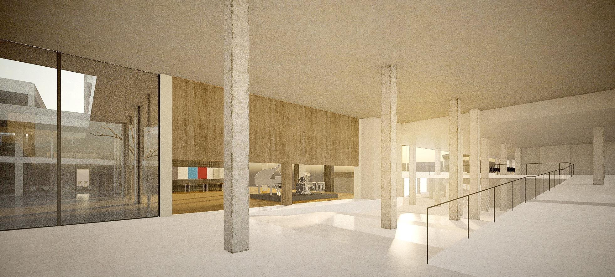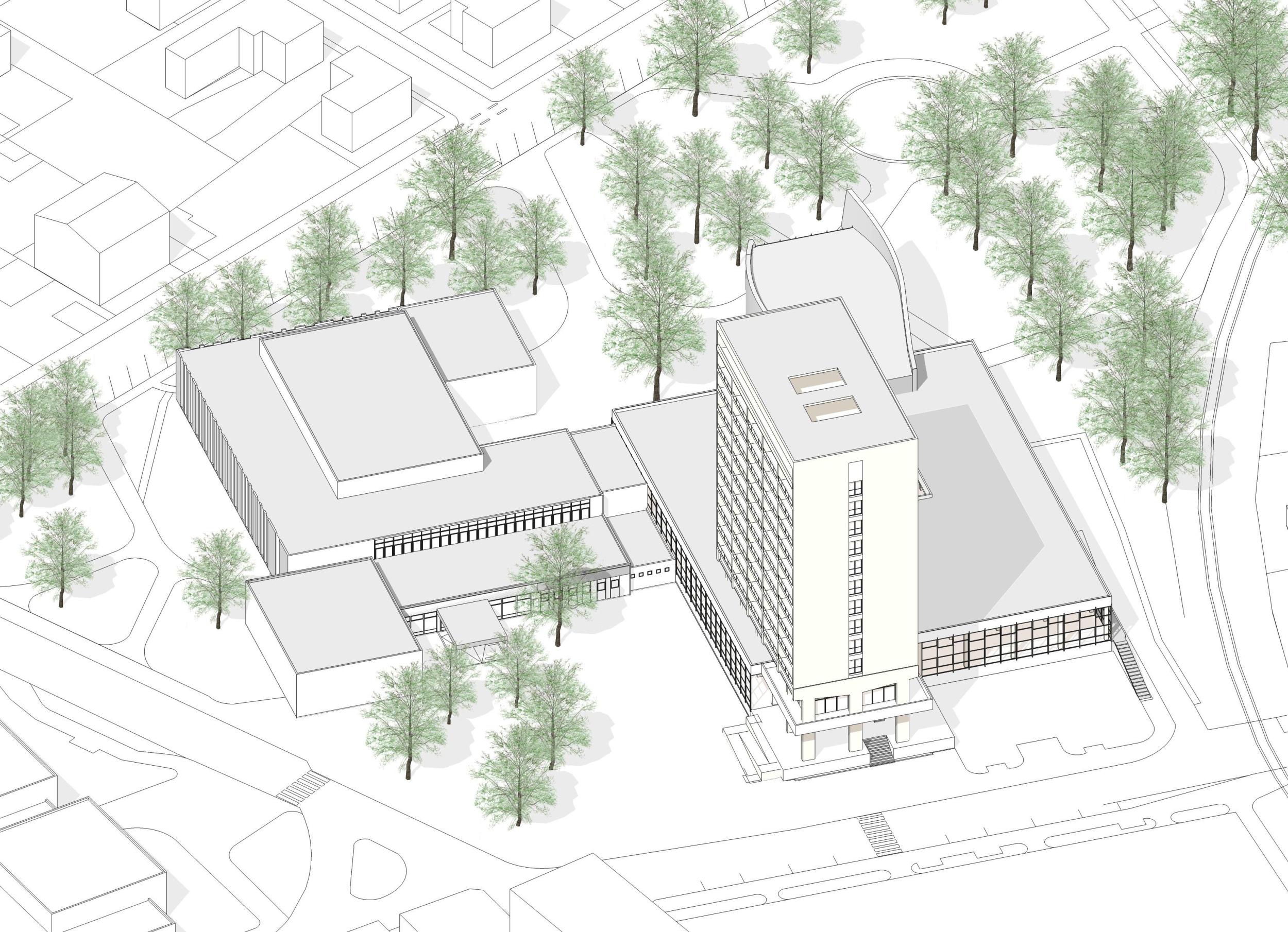 The Commission considers the broader relationships presented to explain why the entrance to the office is located from the plaza, "around the corner" from the other entrances to the cultural spaces and the high-rise building. The Commission appreciates the hierarchy and coverage of the entrances (although it is unsure whether it is right to "elevate the office" in this day and age), the well-chosen barrier-free design, and the high quality of the café that connects everything while naturally controlling the likely synergy between the exhibition wing and the other operations. Some of the fibre cement board facades seem too elemental in their white finish. On the whole the design is very legible. The likely synergy between the exhibition wing and the other spaces is great, as is the accessibility of the design. The restaurant seems too cut off from the cultural venues. The possibility of a partial replacement of the restaurant space with the library is offered. The Commission is not sure about the centralization of the social facilities in 1PP and the organization of the spaces around the Community Hall. During the presentations on May 9, 2018, the jazz club was located upstairs, in the final proposal it is located on the ground floor. The Commission found no reason for this change. Perhaps the ground floor should be more for storage or clubhouses, which might be good to enter directly from the street. The project offers separate operations, logical and economical solutions, and adheres to the brief. The Commission appreciates the economic and rational approach.