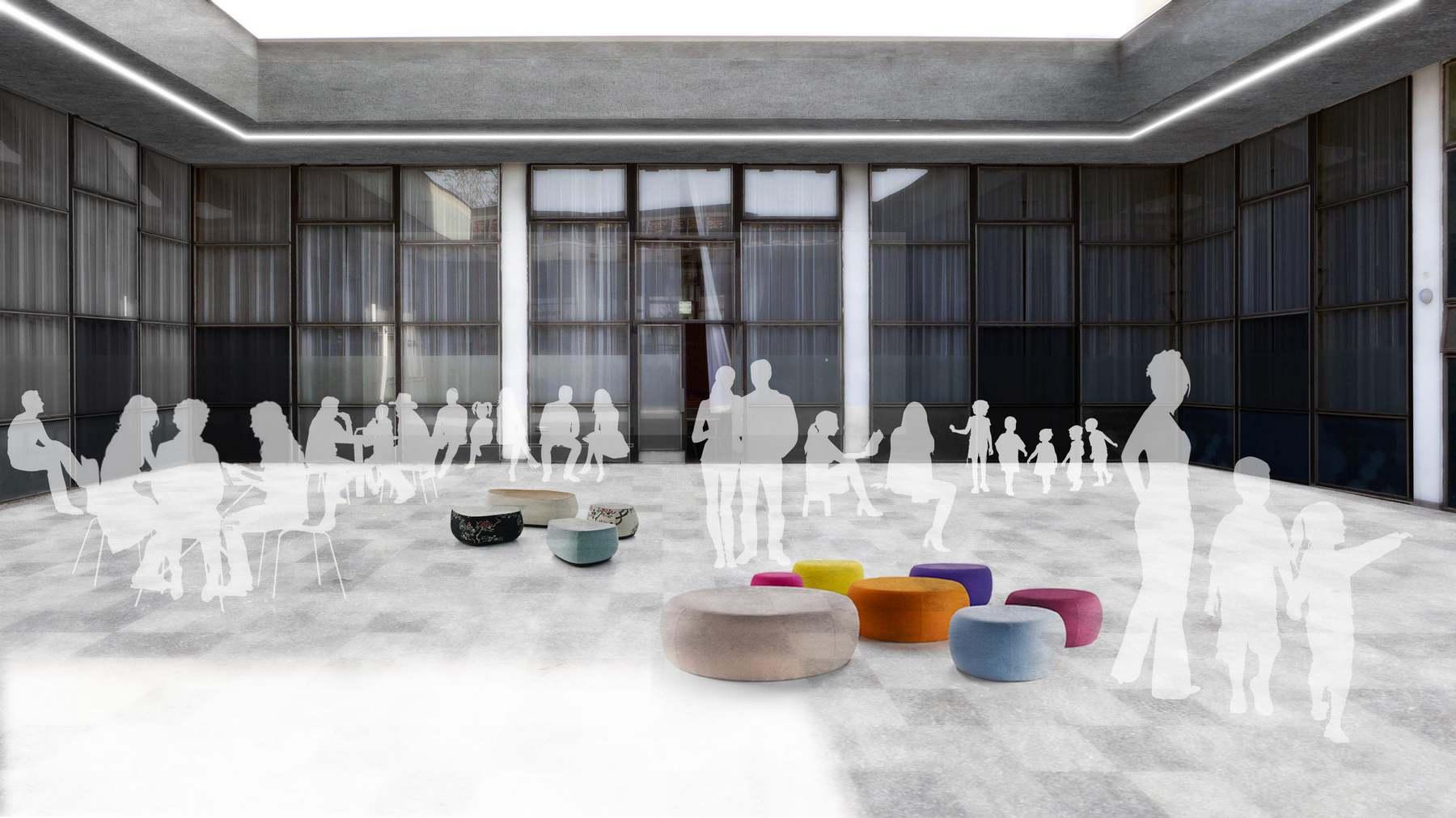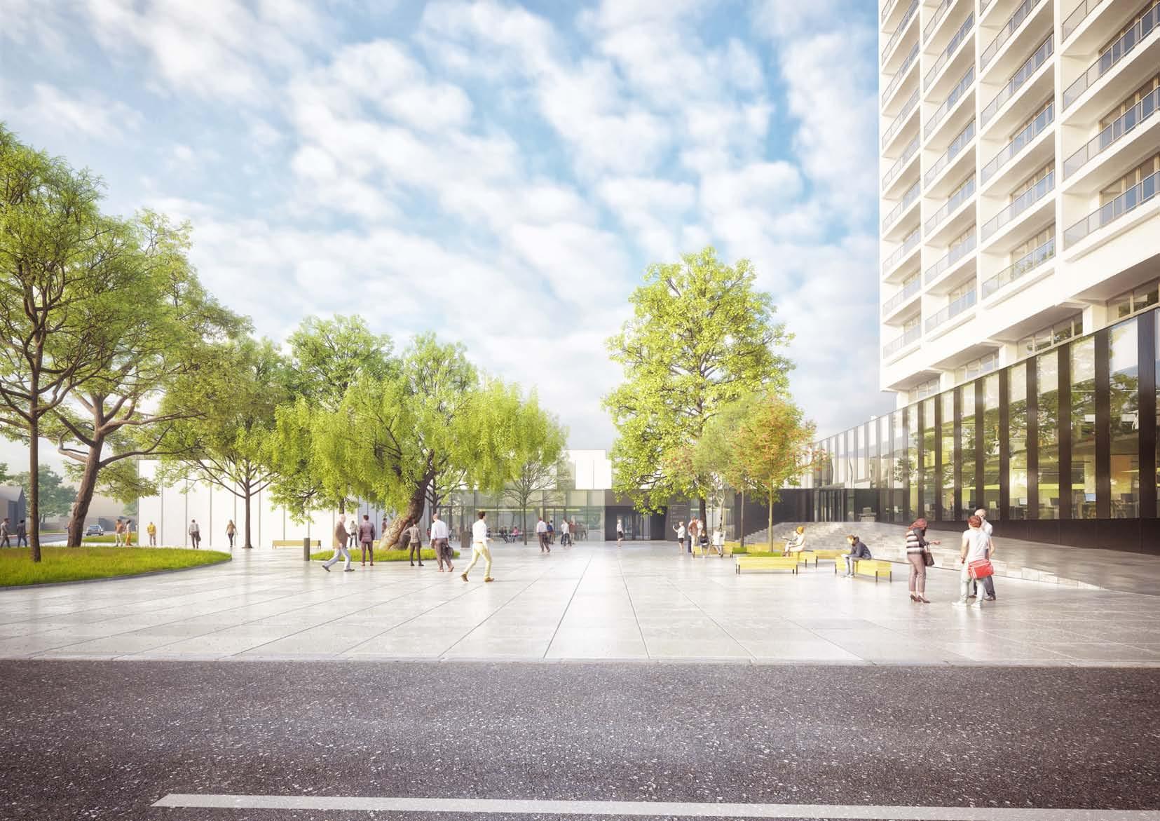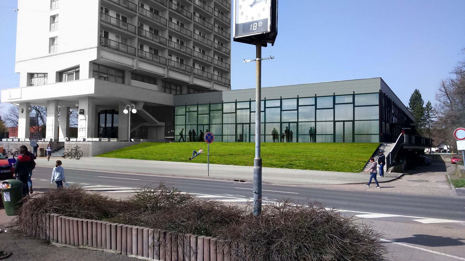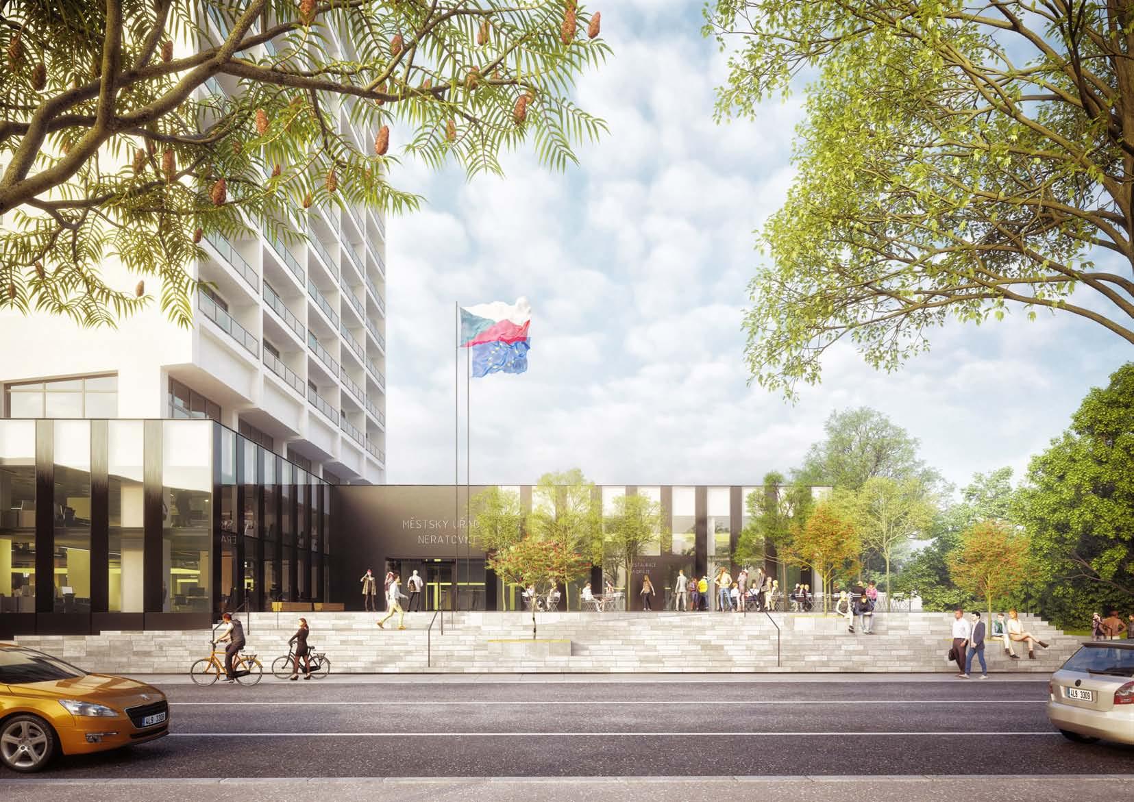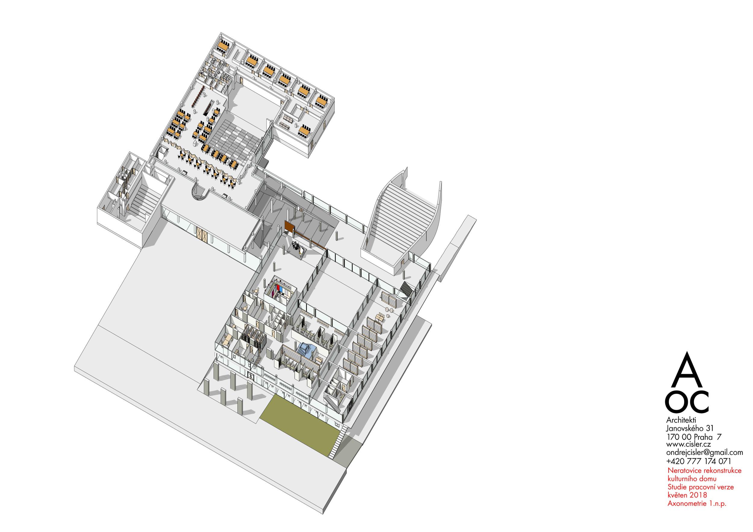 The Commission considers the broader relationships presented to explain why the entrance to the office is located from the plaza, "around the corner" from the other entrances to the cultural spaces and the high-rise building. The Commission appreciates the hierarchy and coverage of the entrances (although it is unsure whether it is right to "elevate the office" in this day and age), the well-chosen barrier-free design, and the high quality of the café that connects everything while naturally controlling the likely synergy between the exhibition wing and the other operations. Some of the fibre cement board facades seem too elemental in their white finish. On the whole the design is very legible. The likely synergy between the exhibition wing and the other spaces is great, as is the accessibility of the design. The restaurant seems too cut off from the cultural venues. The possibility of a partial replacement of the restaurant space with the library is offered. The Commission is not sure about the centralization of the social facilities in 1PP and the organization of the spaces around the Community Hall. During the presentations on May 9, 2018, the jazz club was located upstairs, in the final proposal it is located on the ground floor. The Commission found no reason for this change. Perhaps the ground floor should be more for storage or clubhouses, which might be good to enter directly from the street. The project offers separate operations, logical and economical solutions, and adheres to the brief. The Commission appreciates the economic and rational approach.