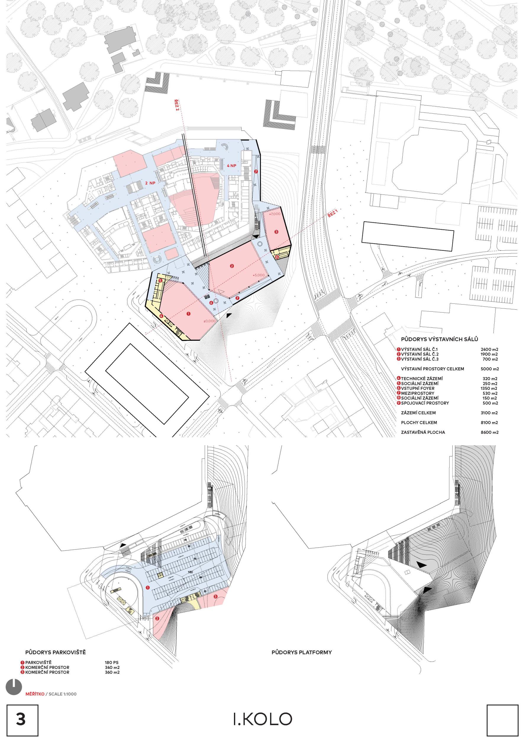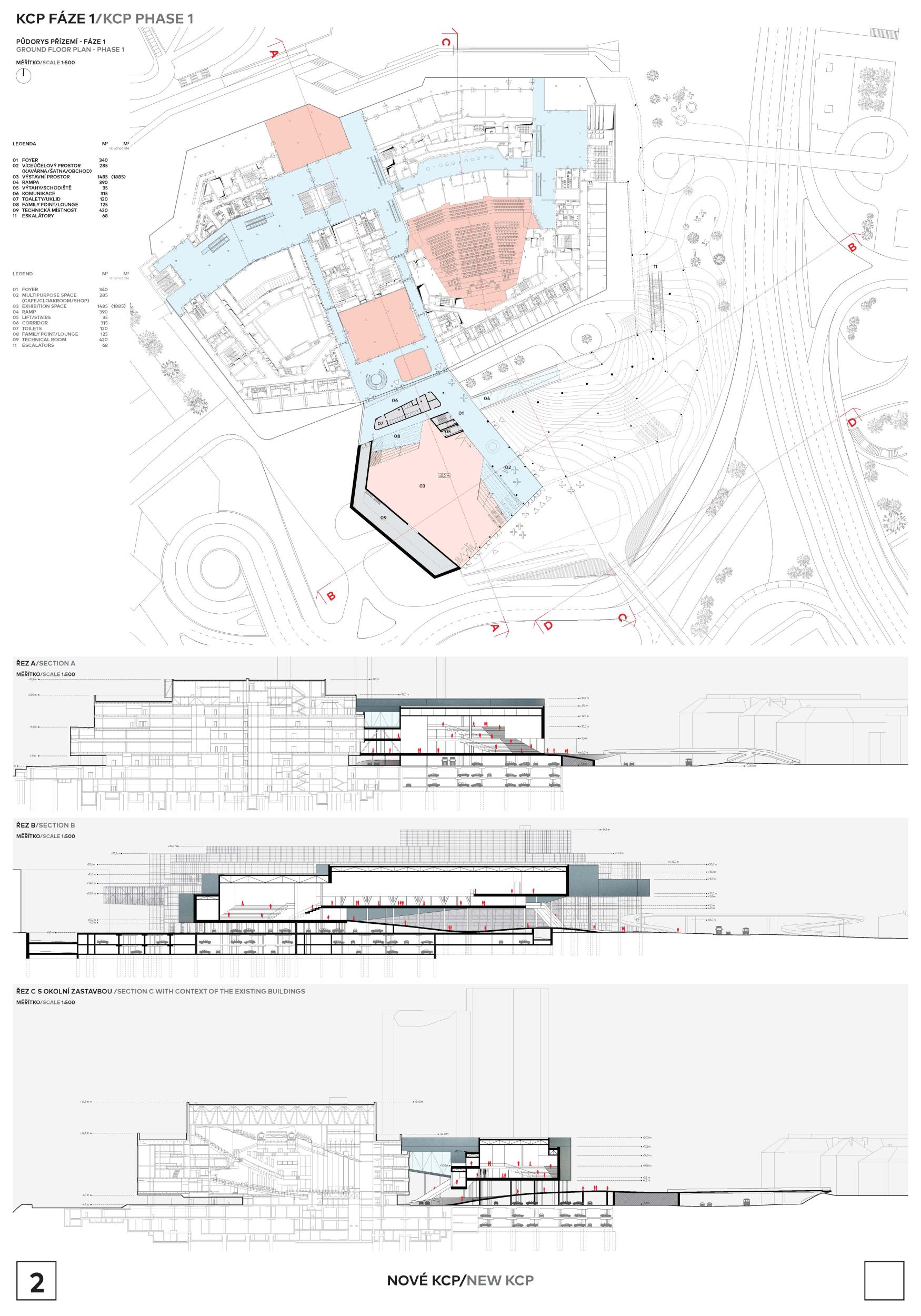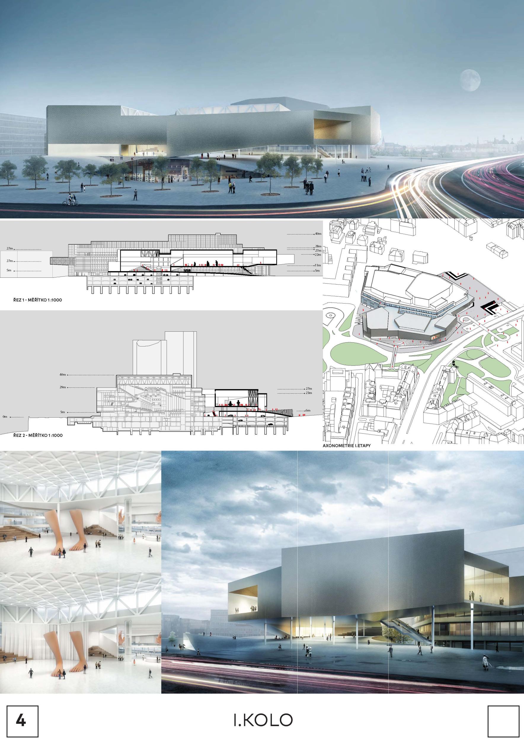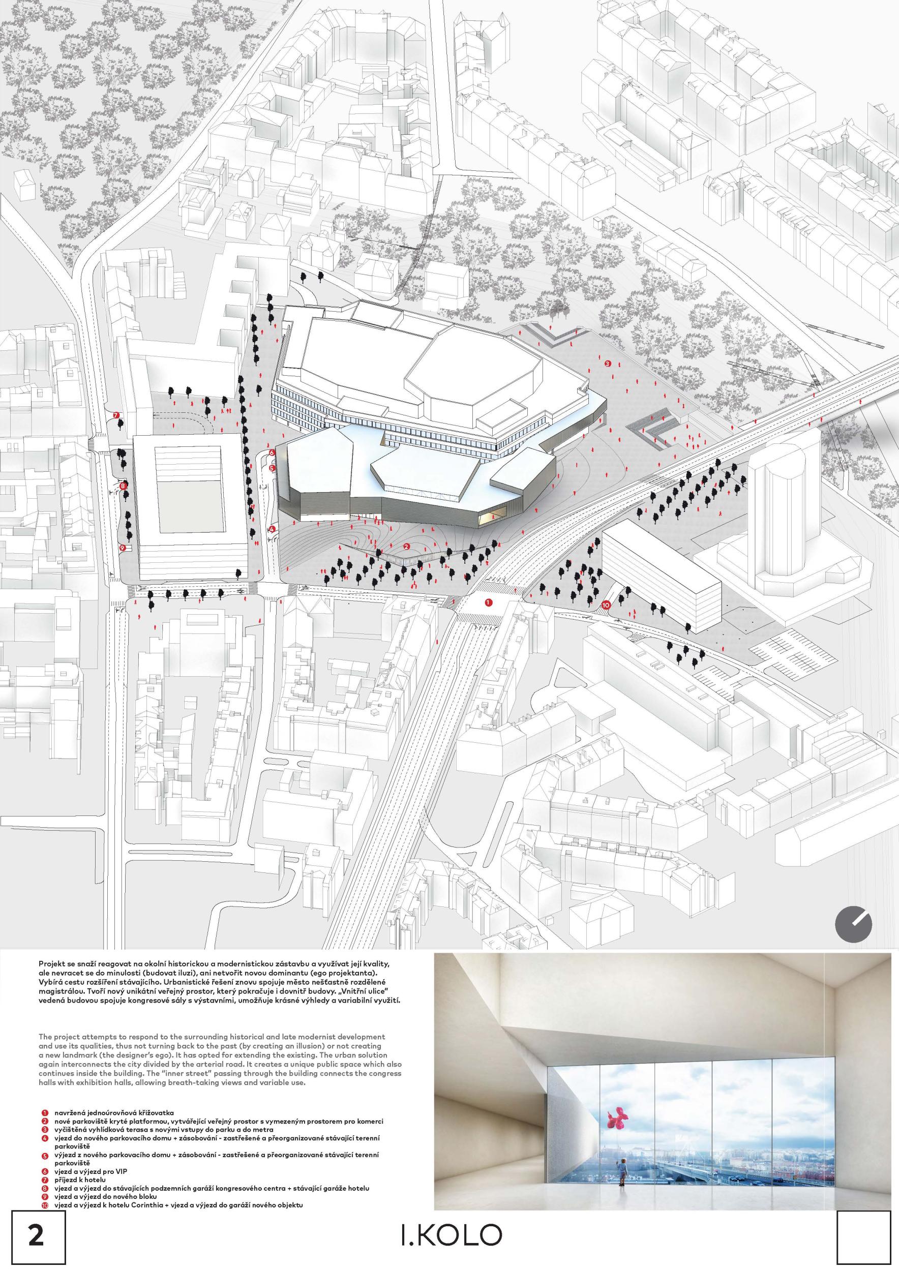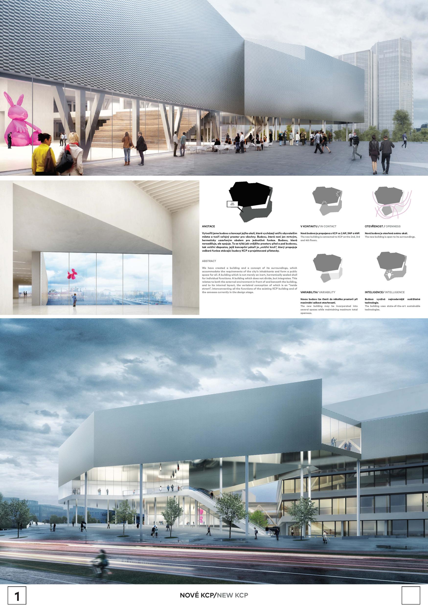 The winning proposal appealed to the jury because of its elegance and great contribution to the city. The rationalisation of the existing infrastructure and the application of a highly integrated transport concept made it possible to exploit the potential of the current public space, even in the final phase, in a very realistic way. Although the new exhibition hall respects the original KCP building, it also represents a distinctive and memorable contemporary architecture in Prague and a new gateway to the historic city. This radical and pure form coexists in a pleasing balance with its surroundings, and the urbanism embraces the intelligence (or information) of the situation instead of working against it. One of the key moments in the evaluation was the fact that the authors responded very well to the comments and recommendations made by the jury for the second round of the competition. This promising project has a lot of potential and, according to the jury, can be very well developed to actual implementation. It will be necessary to take into account the need for operational efficiency and to embrace the commercial nature of the KCP so that it works in balance with the clever design, which is so far more of a light, lofty architecture made for art. However, the jury is confident that in discussion with the investor all the more contentious issues, such as logistics and the final dimensions of the exhibition space, will be resolved. The proposal is flexible enough to take into account the pragmatic needs of the KCP. The jury's final comment is to check whether it would be beneficial to see life inside the hall from the exterior as well - whether the façade could be more open, transparent or even an additional added space.