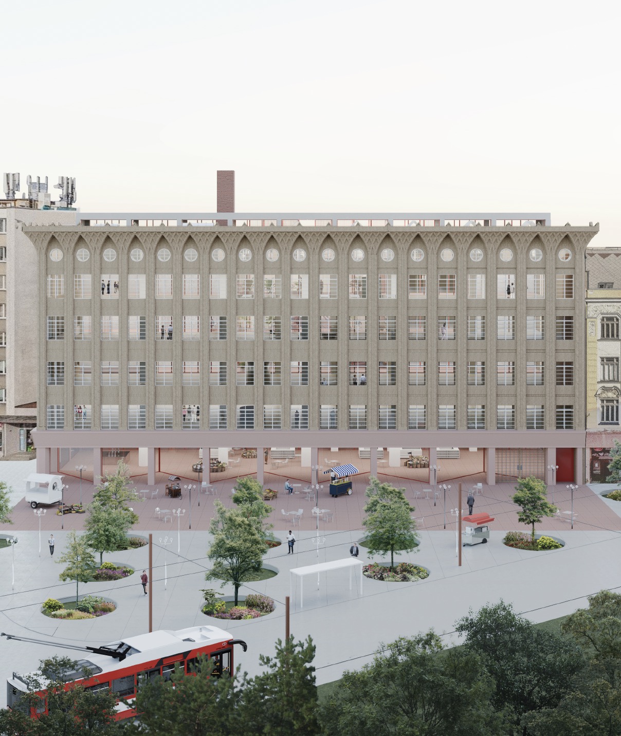 It´s the city's intention, the former Breda Department Store building, to fill it with new life, to place it in the present, and to ensure its long-term and quality operation in the future. The aim of the revitalization of Breda is not to create a new mono-functional complex on an area of approximately 10,000 m2 but rather to provide space for different forms of use that will complement, influence, and develop each other.