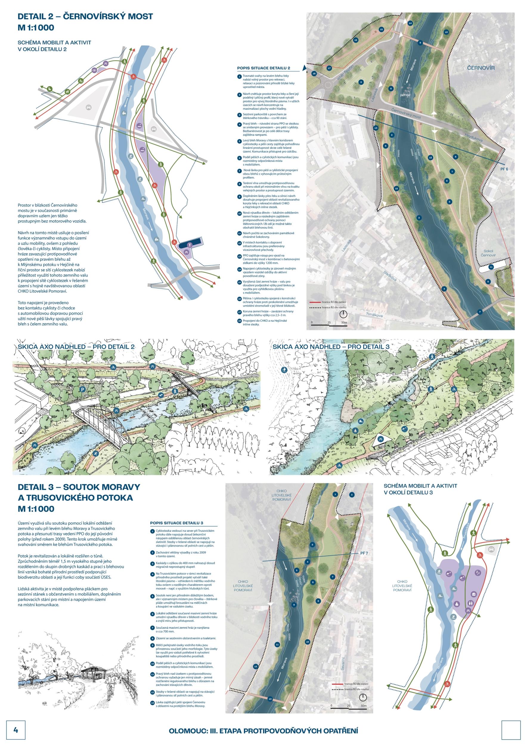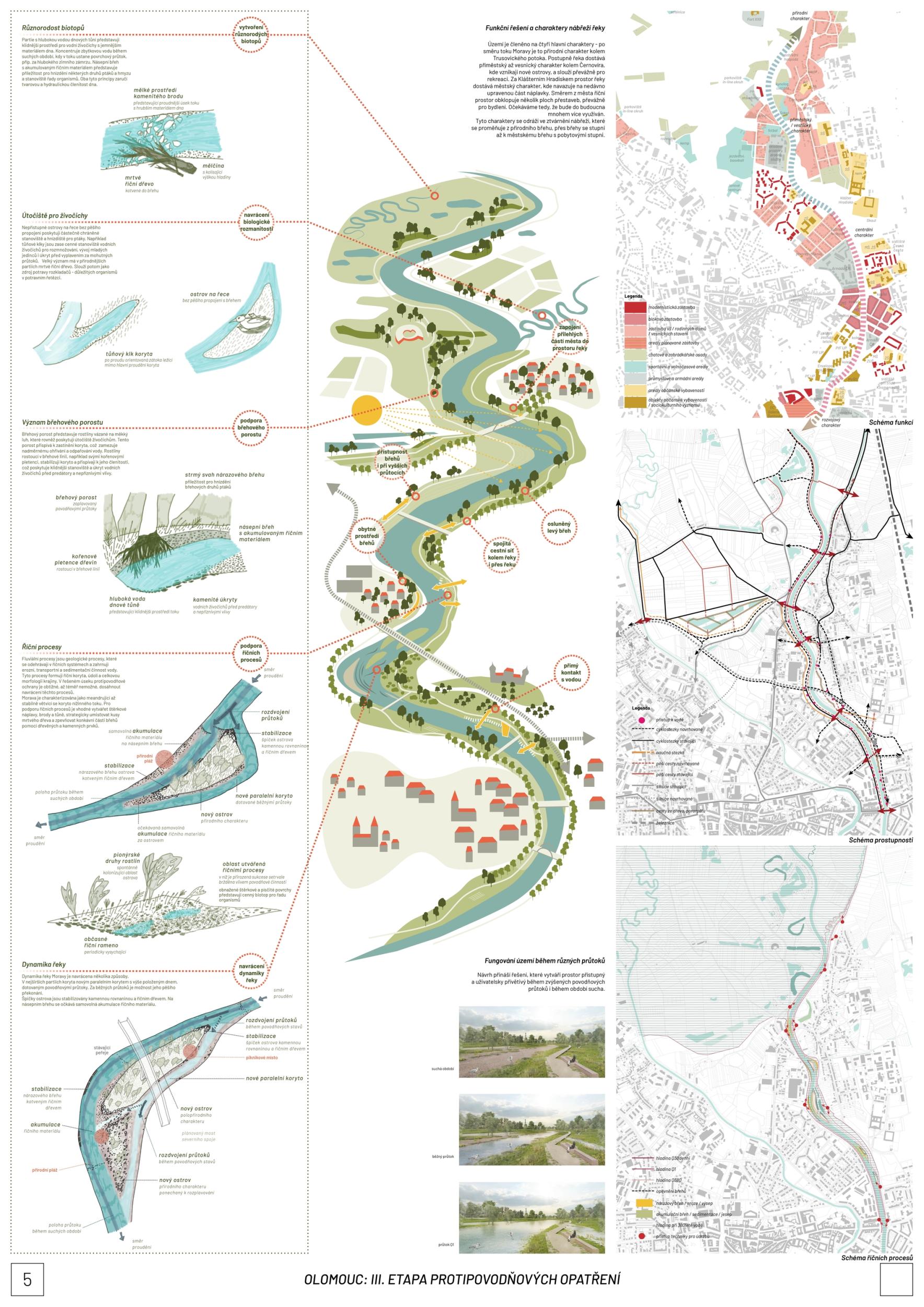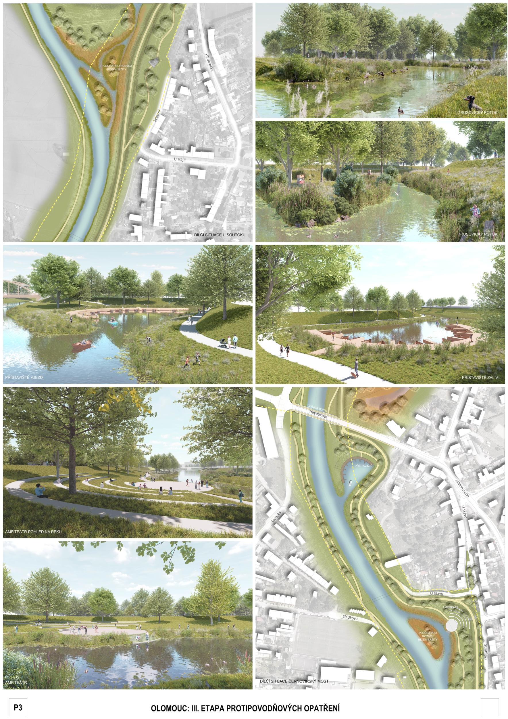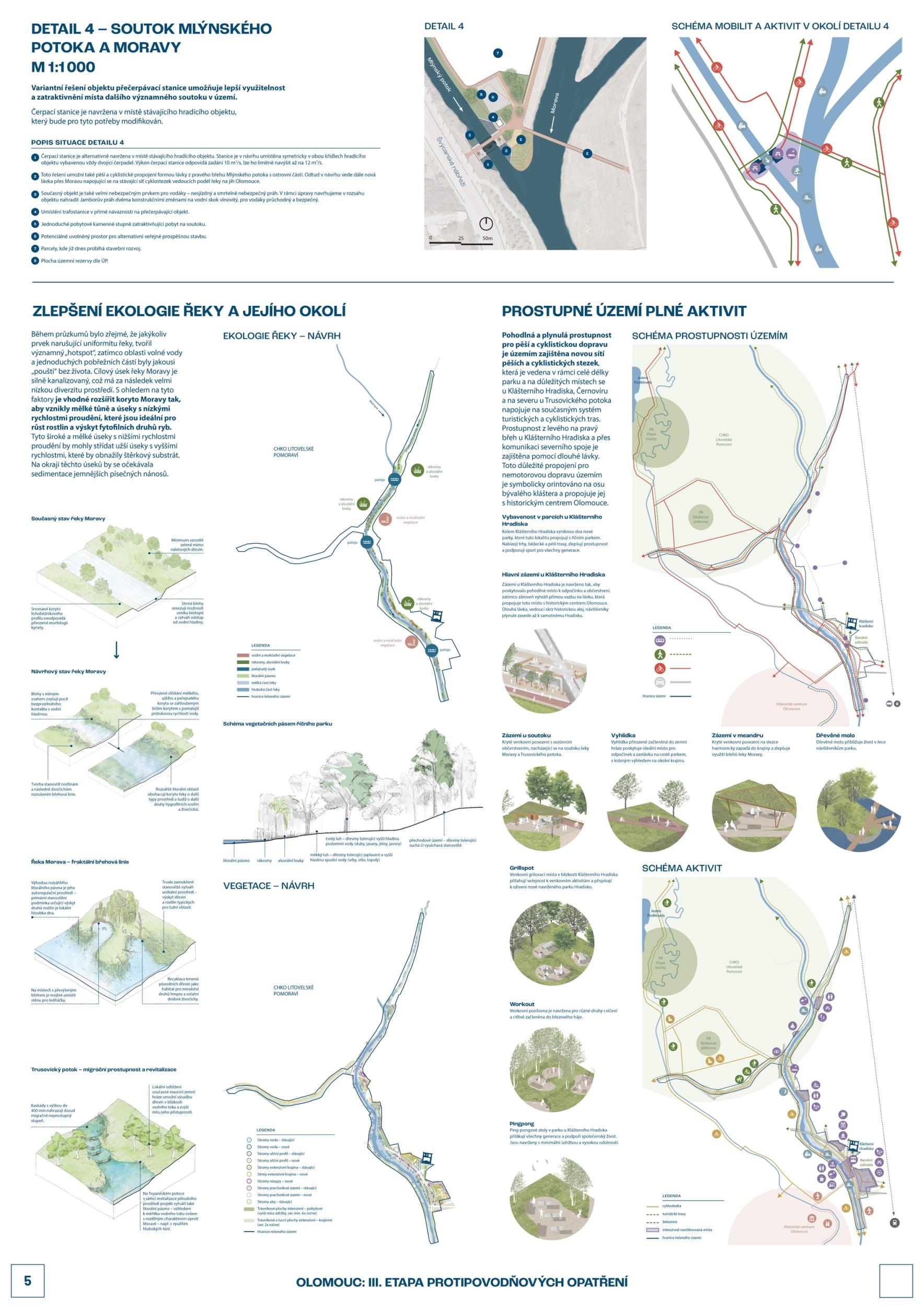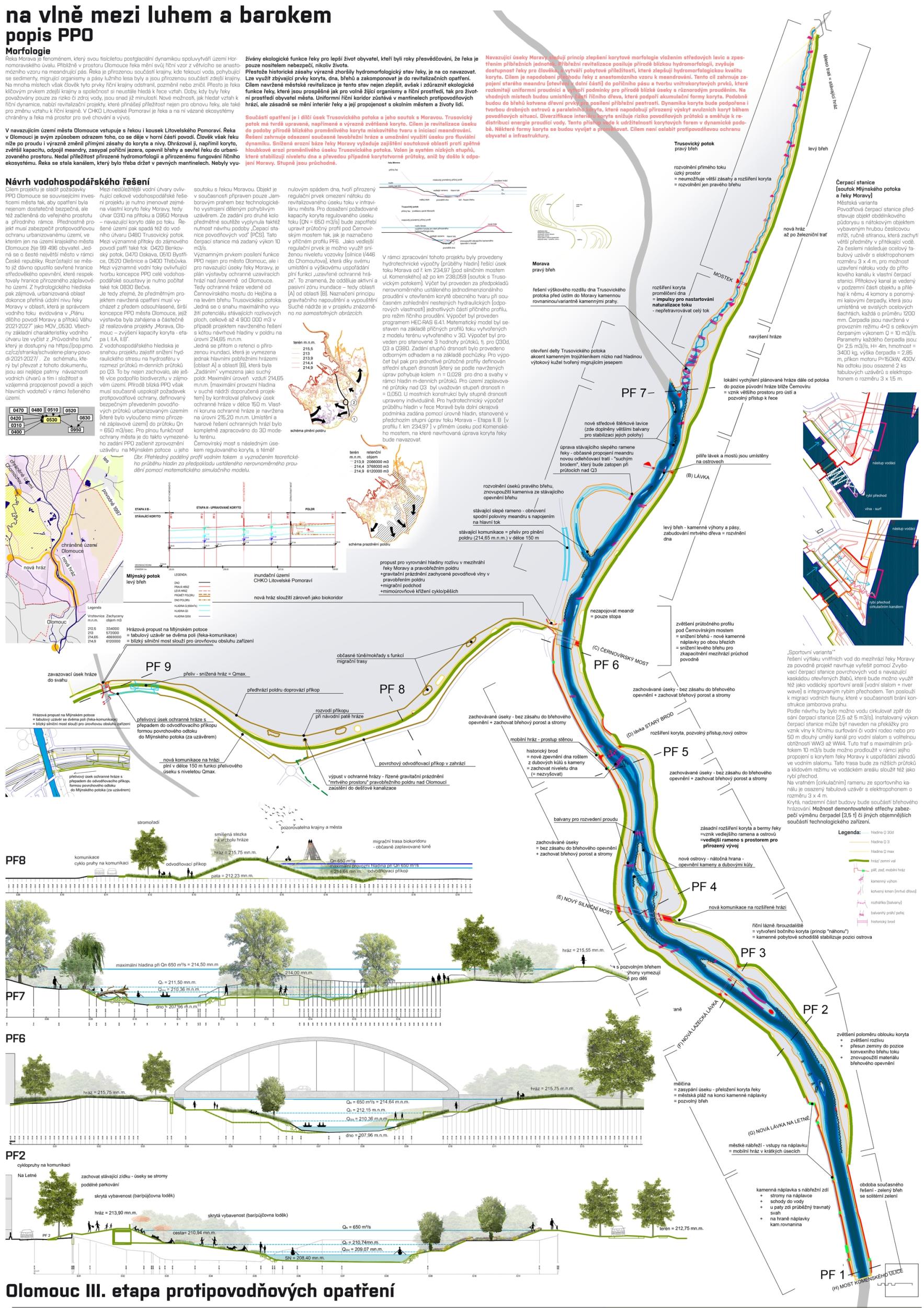 We see fortitude as resilience in the changing landscape and the city's structure and history. Conservation is an opportunity for its development. The variability of Moravia reflects the diversity of the river floodplain, the mosaic of historic traces of unique habitats and recreational landscapes. The Morava and its streams form symbolic axes of the landscape wedge of Litovel Pomoravie. The protection of Olomouc together creates landscape circuits, park axes, and the main public spaces around the Morava and the Mill Stream, which have a variable character according to the landscape circuits.