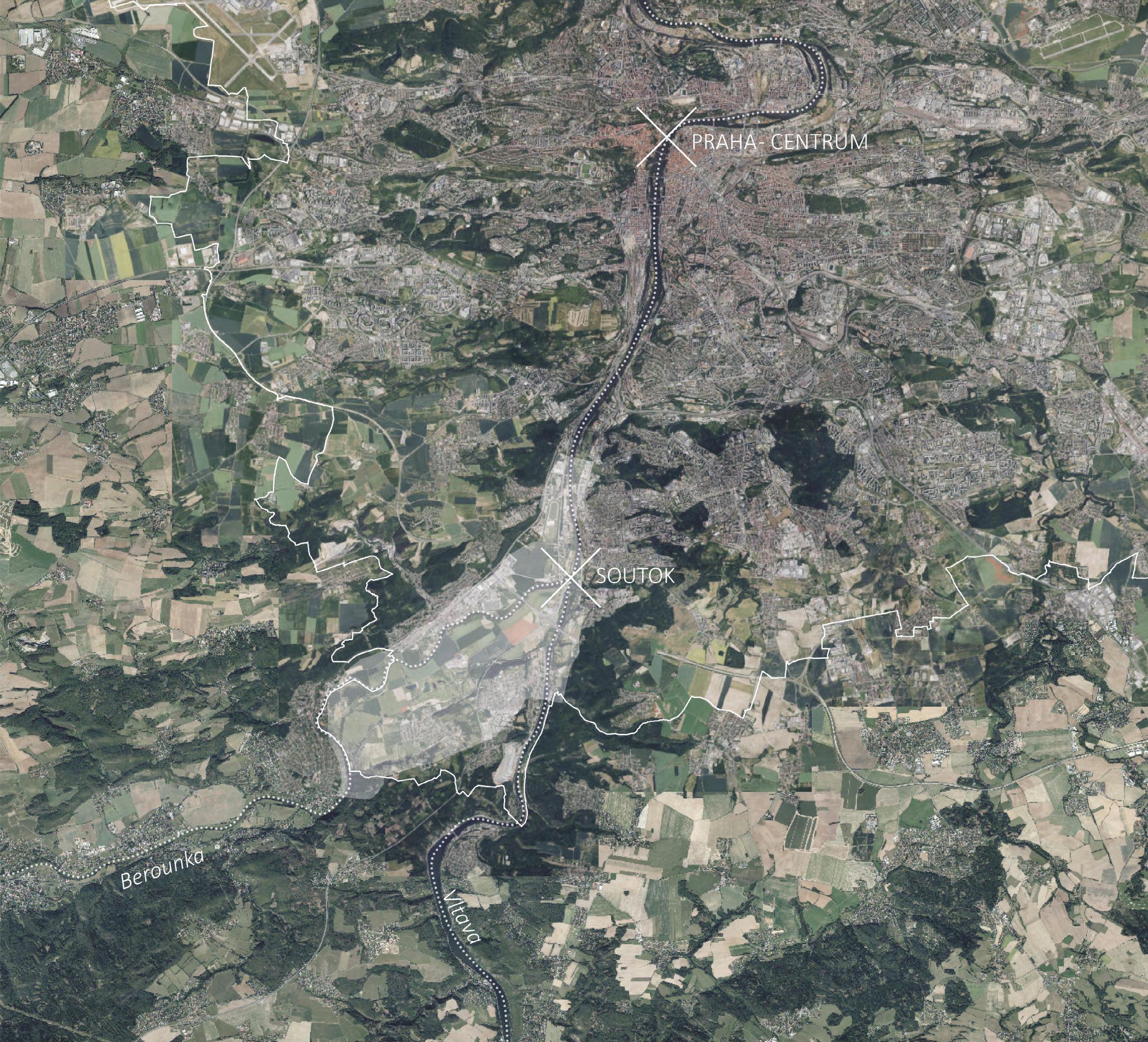 The subject of the competition was a landscape-urban concept for the revitalization of the landscape of the confluence of the Vltava and Berounka rivers (approx. 1300 ha), including wider links with an emphasis on the landscape along the watercourses. The subject of the competition contained also a more detailed elaboration of four sub-areas.