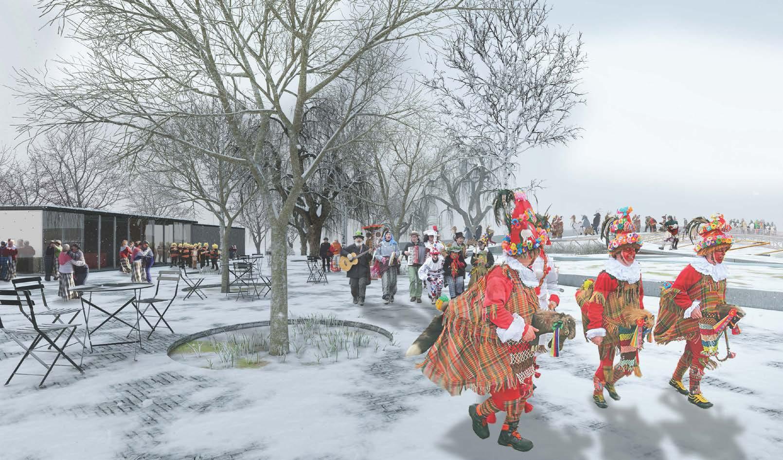 EMF + NORMA + PARETO / Norma: Jana Moravcová, Kristýna Zechmeisterová, Vanda Kotková, Anna Lochmanová, Alexandra Sypeňová, Jan Vacek; EMF landscape architects: Martí Franch Batllori, Carla Coromina‐Cabecera, Andrea Díaz‐Lacalle, Alexis Perrocheau, Carla Vilà‐Muñoz; Pareto Paysage: Héloïse Boujou, Simon Gabillard; cooperation: Kateřina Koňata Dolejšová (graphics, visual style), Jan Albert Šturma (ecology), Jan Hraba (HKR advokátní kancelář ‐ law), Lukáš Krejčí (Envicons – water management), Lukáš Makovský (urban economy), Michaela Vrbková (arts and crafts)