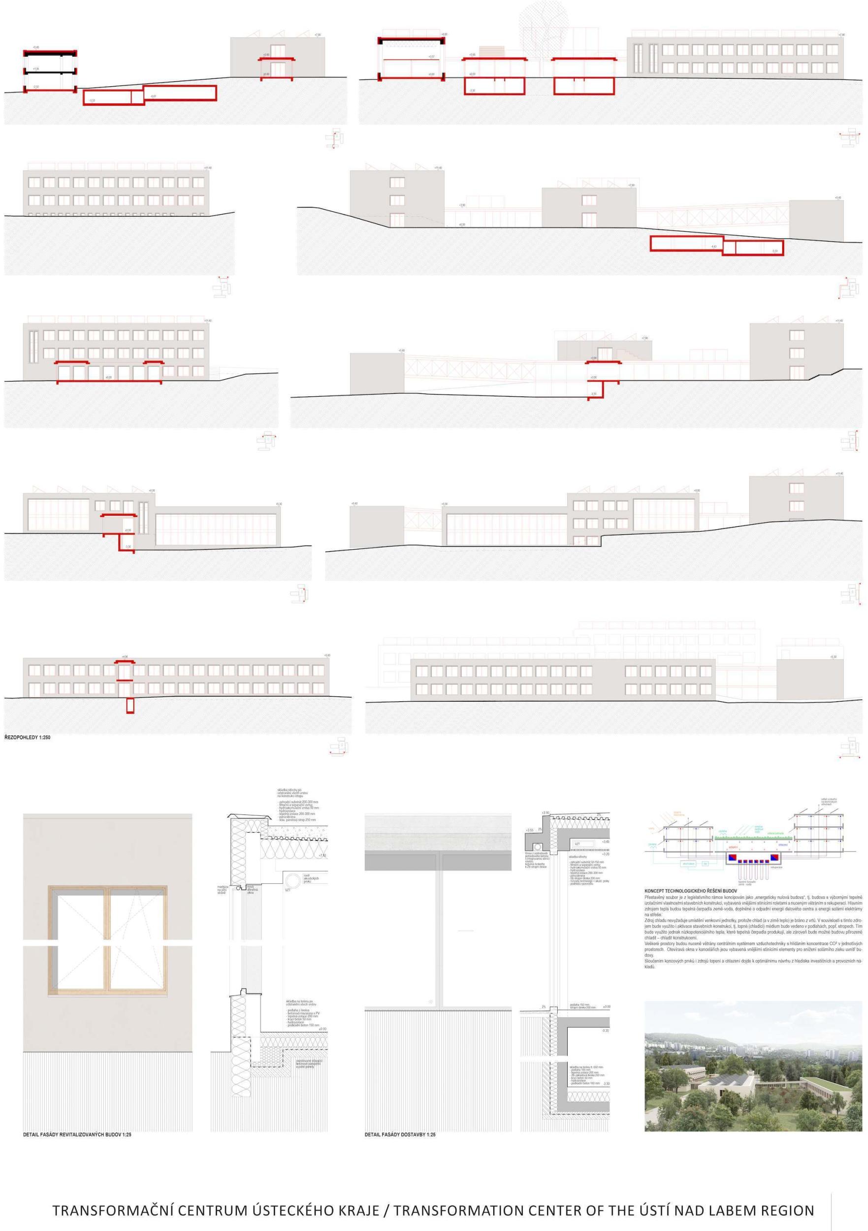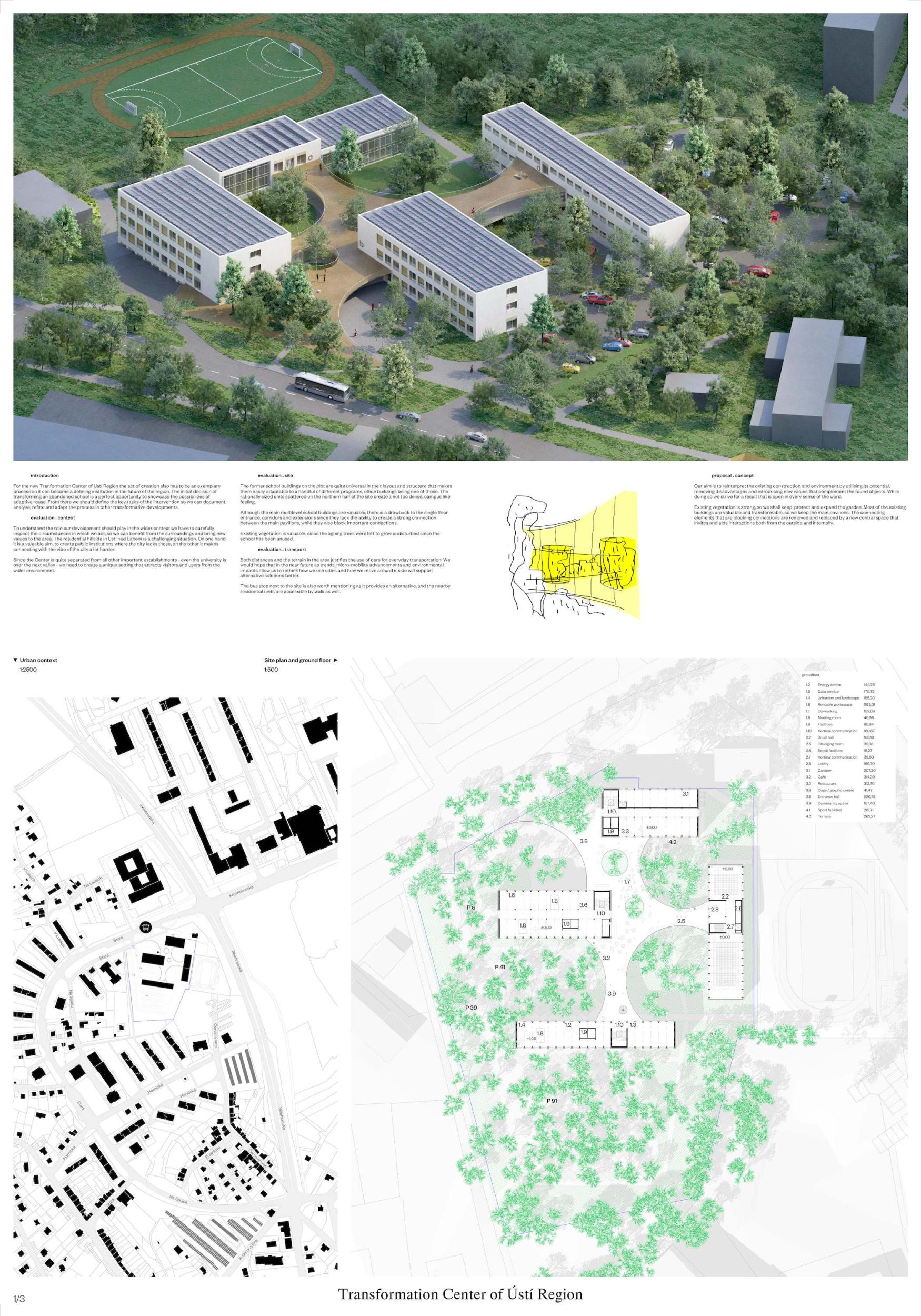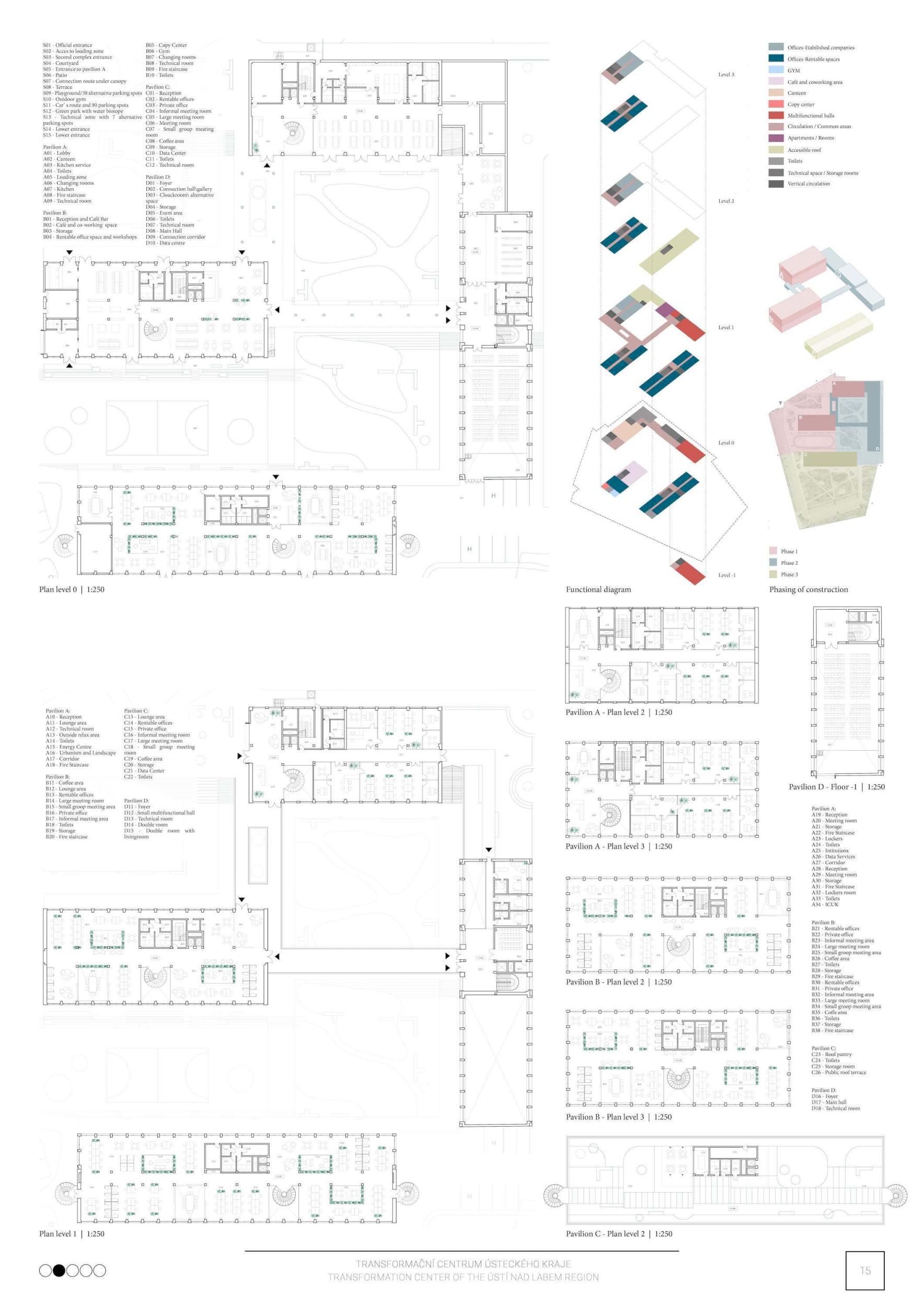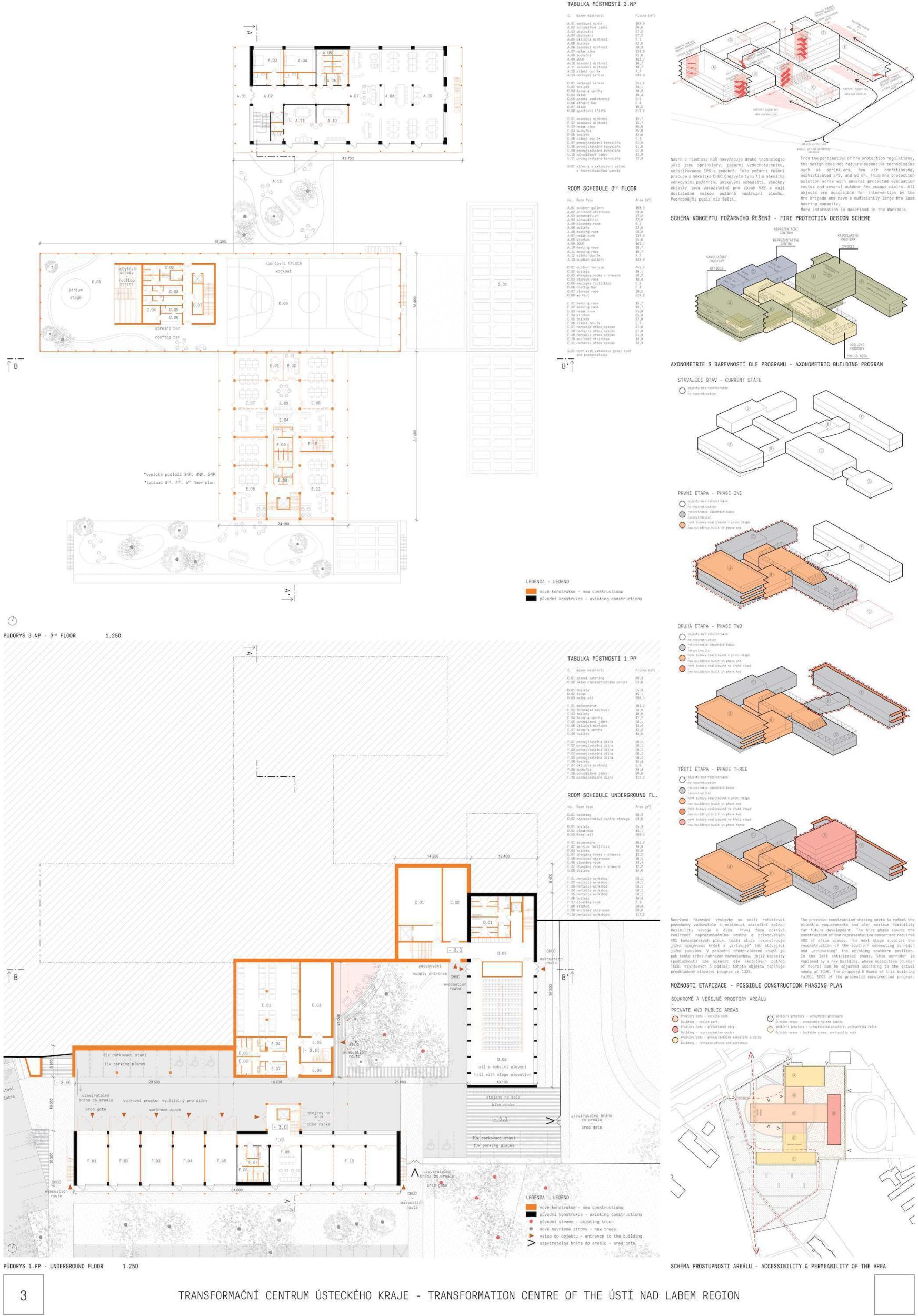 The persuasiveness of the design is evident at first glance with its rational approach to the architectural transformation of the existing site. The legibility of the new building modifications, the minimization of the built-up area, the easy phasing, and the adequacy of the investment costs combine to form an effective development strategy. Respect for the qualities of the original architectural aesthetic is given in contrast to the newly designed volumes added to the existing structure. The extensions thus create another layer of the building, and their expression harmoniously complements the image of the resulting mass. The material solution of the existing volumes sensitively interprets the original form of the façade. The new extensions are subtly differentiated in terms of material and substance. The central motif of the design is a simple walkway that connects the individual buildings and frames the outdoor space - the three courtyards that form the heart of the plan. The public spaces are conceived generously but proportionately to their use. The question is whether the inner courtyards between pavilions A, B and D duplicate each other in character and thus offer the same possibilities of use unnecessarily. There is a clear hierarchy in the layout and operation of the buildings, and the emphasis is on the flexibility of space, as demonstrated by the office use scenarios presented. All common meeting spaces flow into outdoor courtyards and naturally link the entire site into a functioning whole. A strong point of the design is the convincing concept of phasing, which allows for gradually redeveloping the buildings without significantly disrupting the site's operation. The jury highly appreciates the reflection of the criticism from the first round and the consistent refinement of the design for the second round, which gives a strong partner for the upcoming project development and its successful implementation.