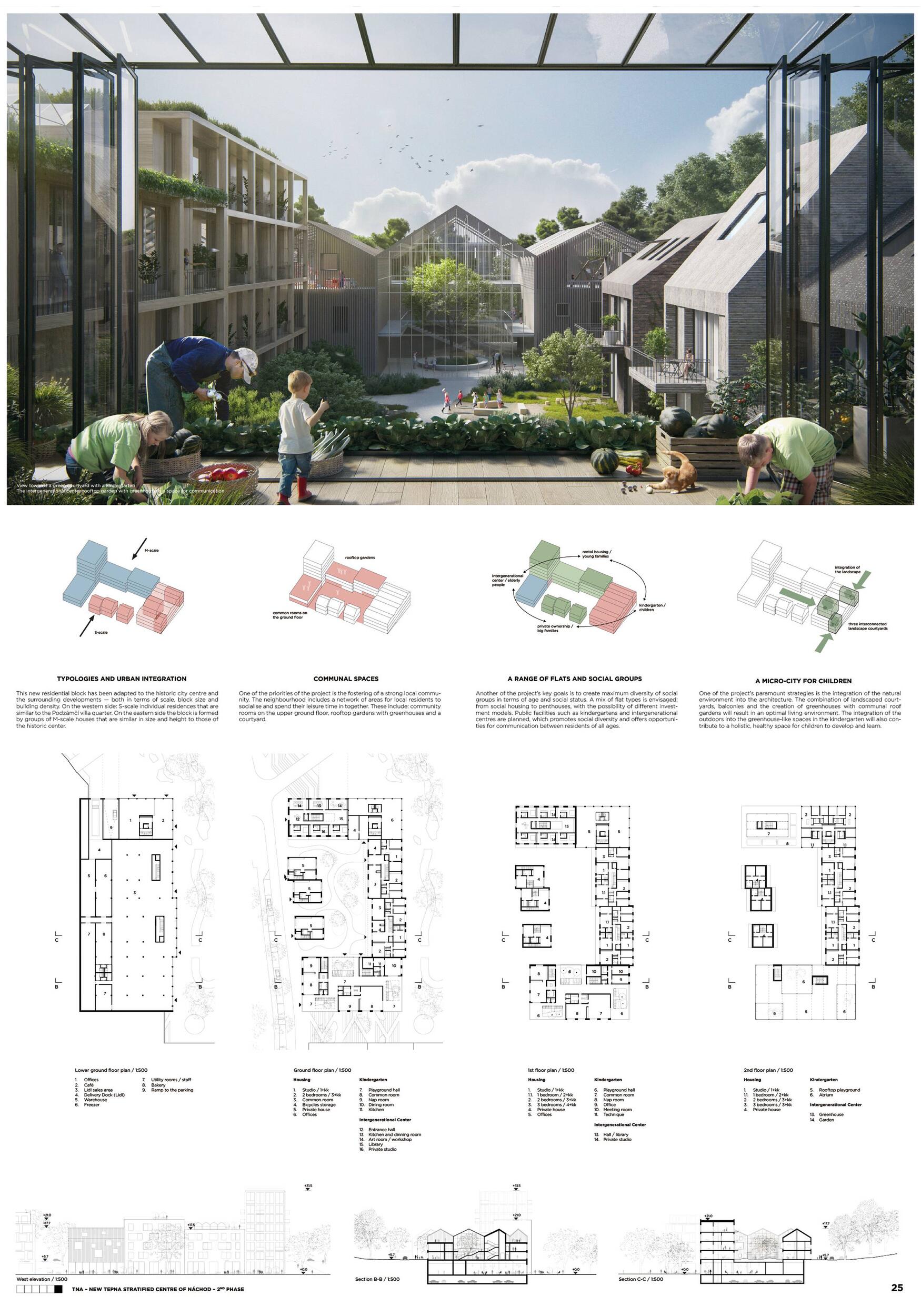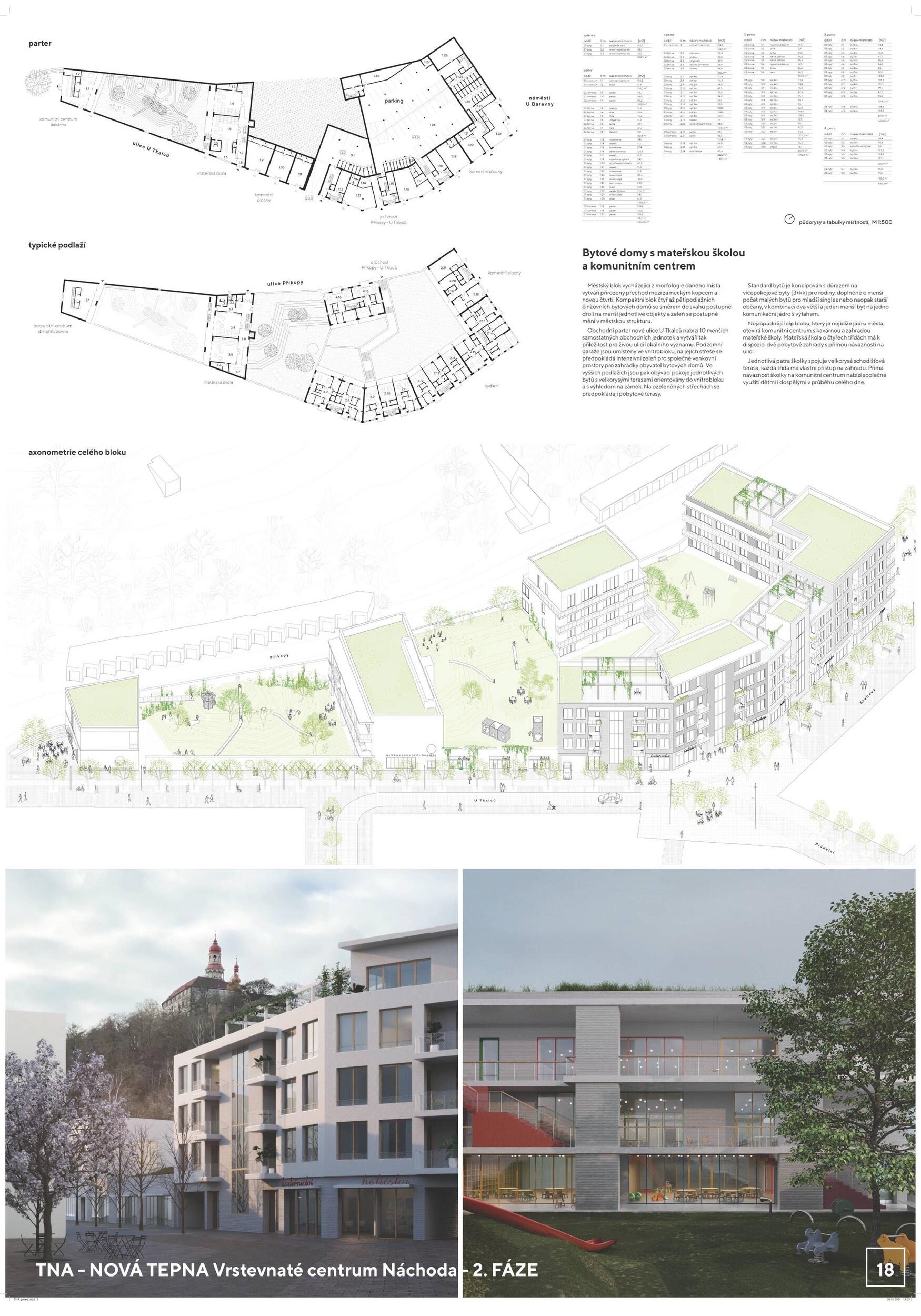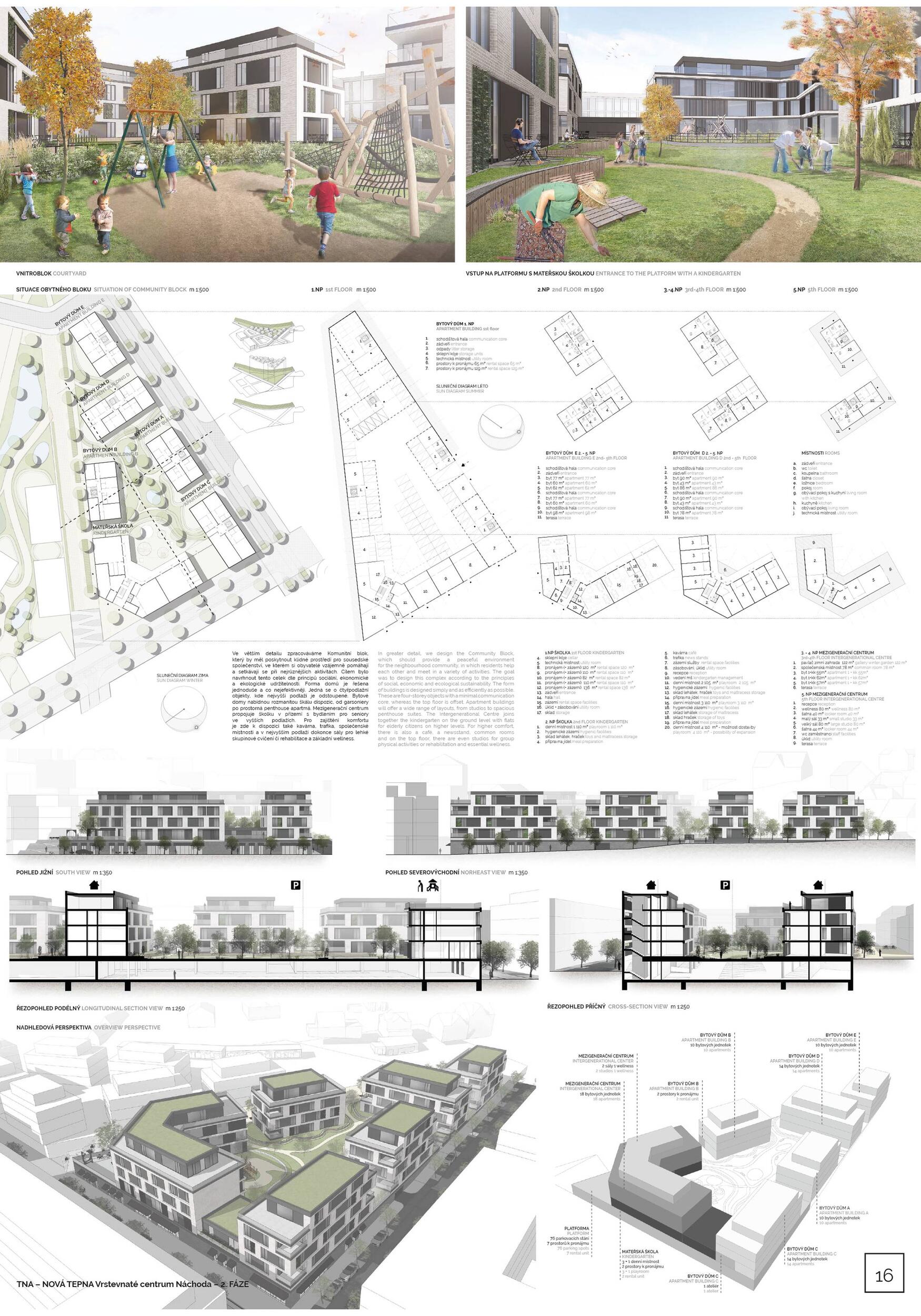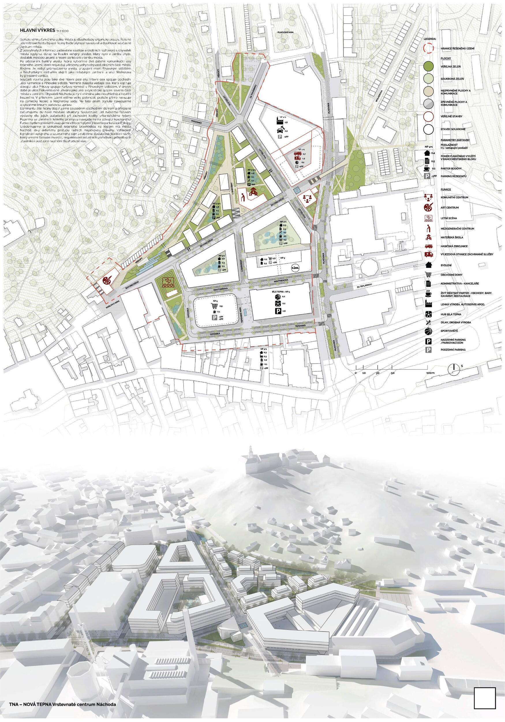With a rich history closely linked to the weaving industry, the city of Náchod is now in need of a new identity that takes its historical and social context into account. The city’s current problems are related to the exodus of its population and suburbanization. The city is losing its attractiveness for residents and they are forced to look for new, more relevant places to live. A new momentum for the city’s development may lie in the creation of a model of a compact city with a range of options for work, recreation and living. Furthermore, the construction of a socially and economically sustainable ecosystem may attract new residents and promote the harmonious development of the city. New Tepna is likely to become the second heart of the city of Nachod — it is closely connected with the historical center and complements it with its unique qualities.