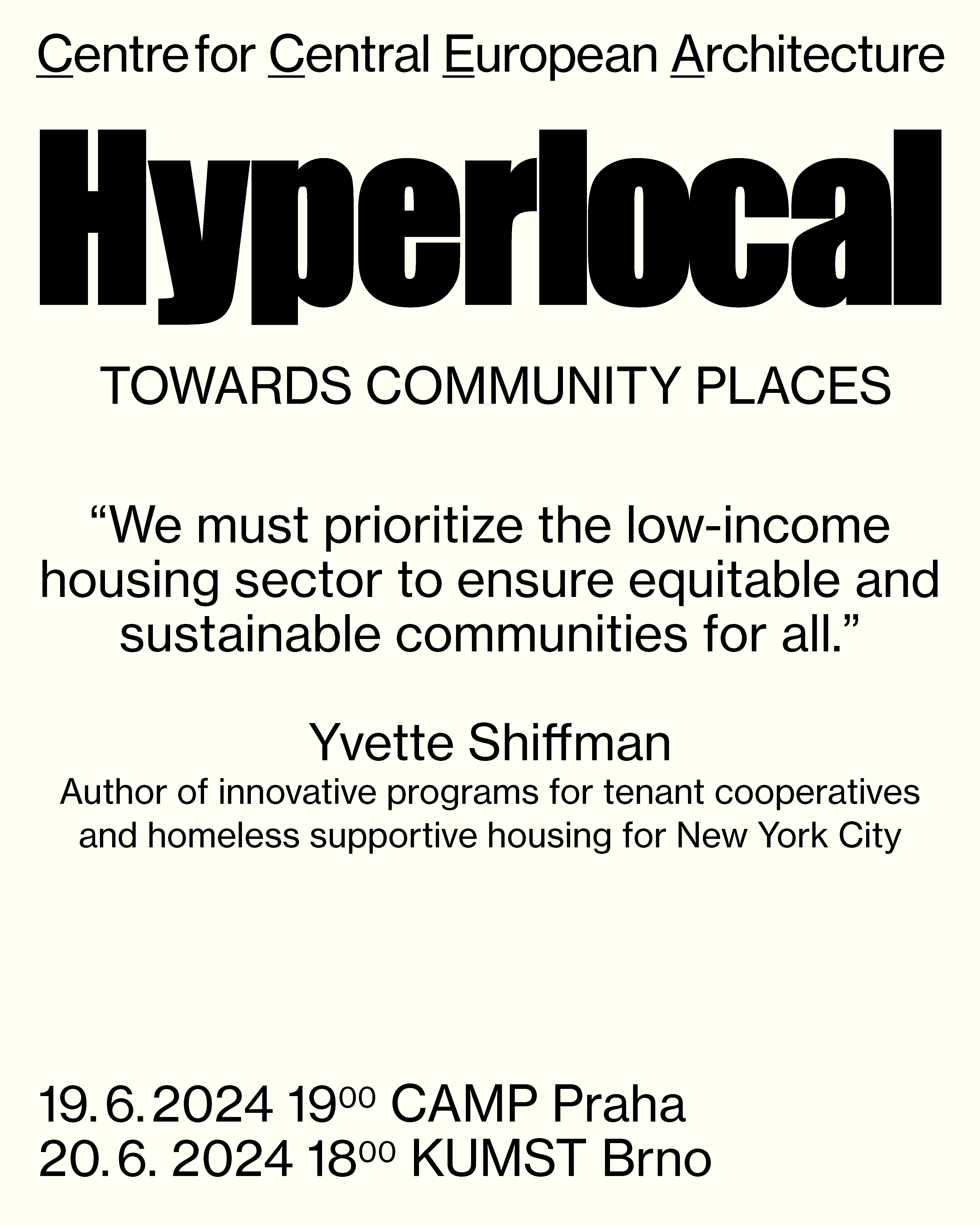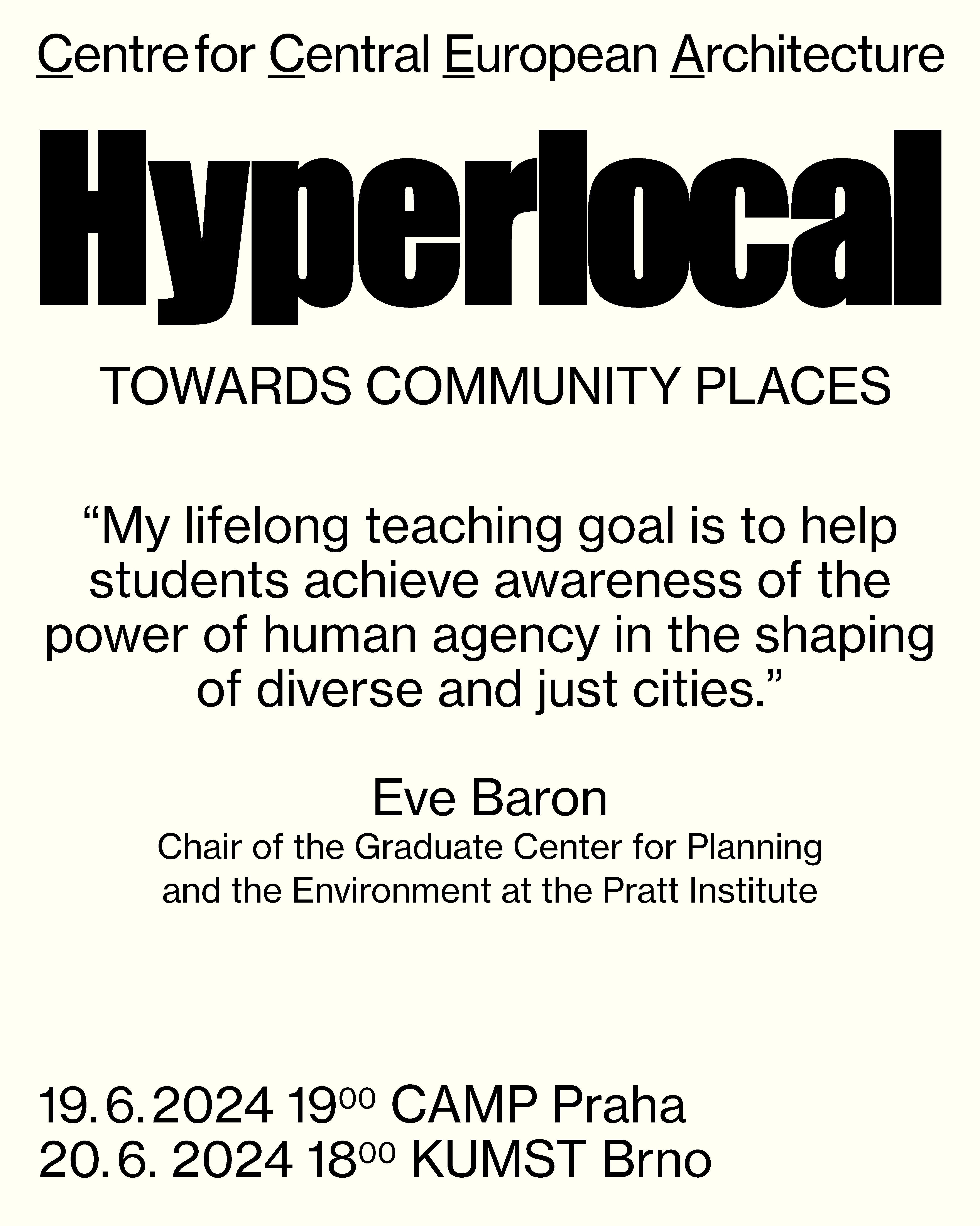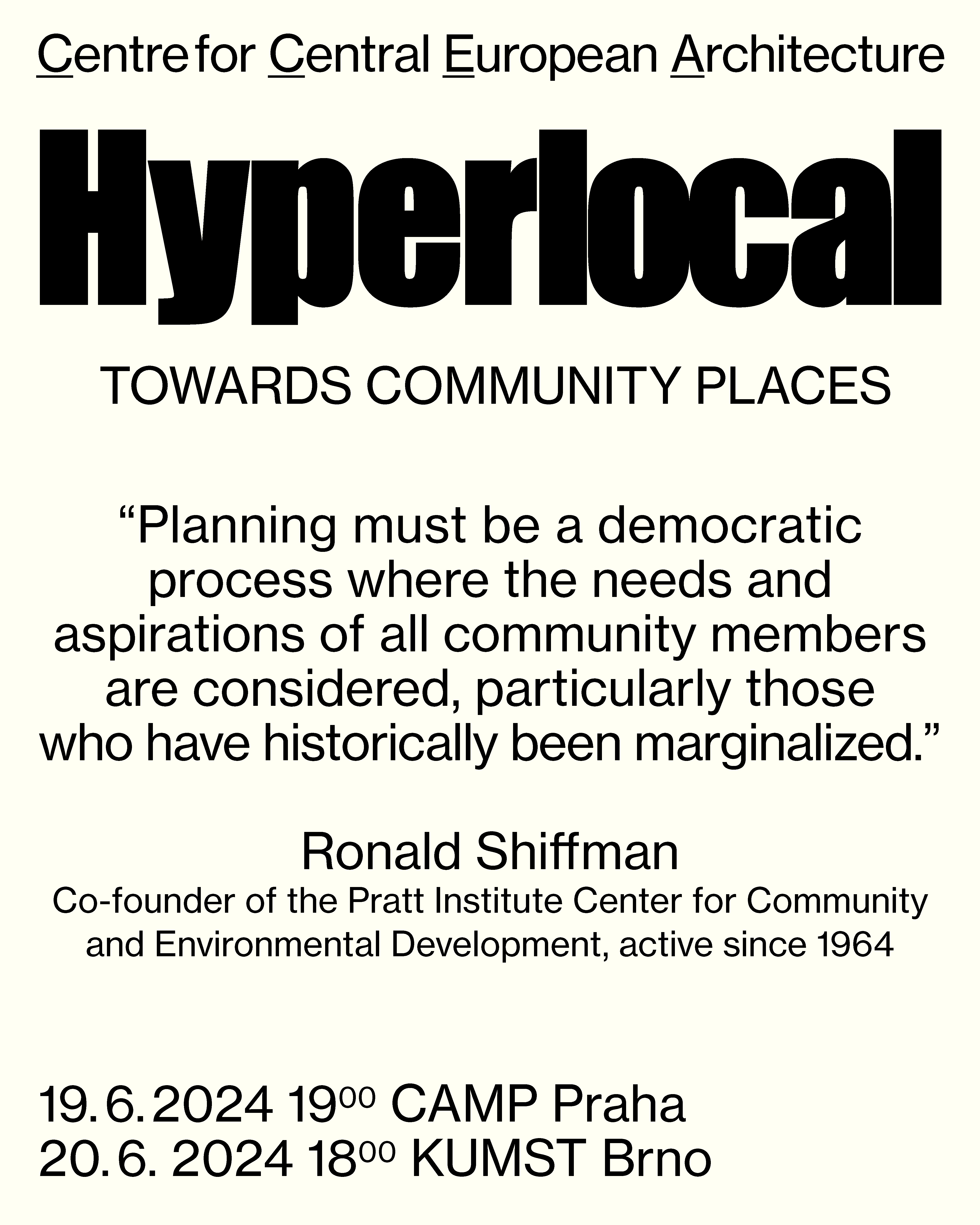 Discussions with New York's Pratt Institute experts, pioneers in community planning, social justice, and environmental issues. Eve Baron, David Burney, Eva Hanhardt, and Ronald & Yvette Shiffman will share their experiences and lead intimate discussions on how to deepen trust and improve collaboration among citizens, as well as how to enhance education in the field. The project is being developed in collaboration with FaVU VUT.