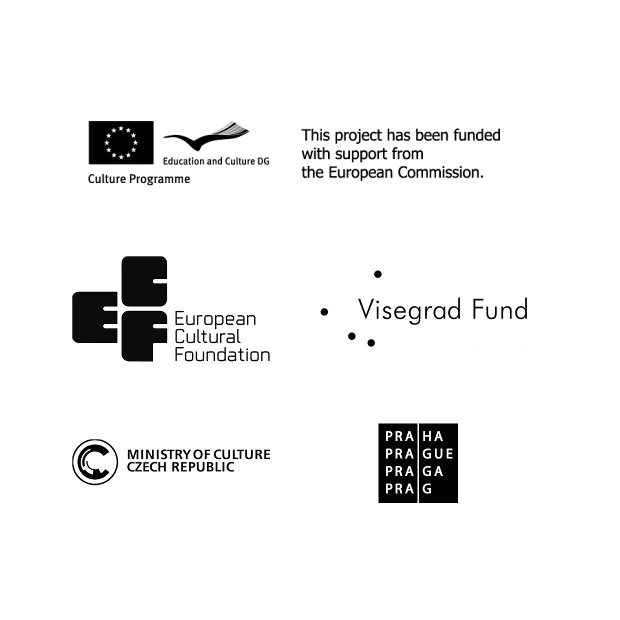 - Kulturní projekt podpořenEuropean Commission: Culture Programme, European Cultural Foundation, Visegrad Fund, Ministerstvo kultury ČR, hlavní město Praha a další