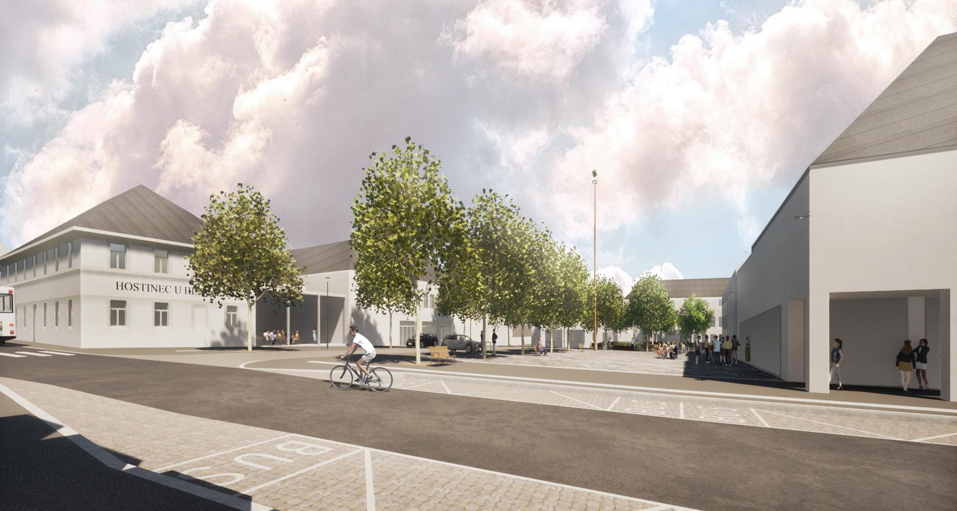 Náměstí II. odboje má v současnosti charakter parkovací plochy a Ješutovo náměstí zase parkové plochy se sochou Jana Nepomuckého v jejím středu. Na náměstích jsou objekty polikliniky, divadla, knihovny a městského úřadu. Na Ješutově náměstí se dále nachází objekt č. p. 76 – památkově chráněná venkovská usedlost.