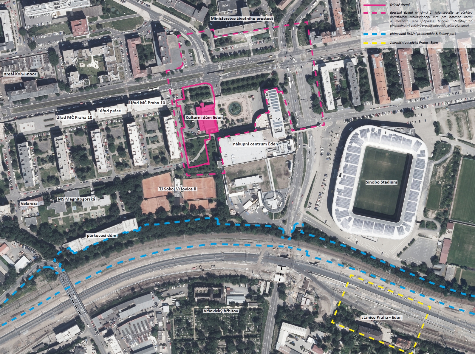 Cílem soutěže bylo navrhnout městský dům na parcele patřící kulturnímu domu Eden a představit koncept veřejných prostor celého dotčeného území. Stavba má v sobě spojovat několik programů, a to především nájemní bydlení ve vyšších patrech s kulturním programem, obchody a službami v nižších patrech, které tuto lokalitu oživí a umožní trávení času uvnitř objektu i v jeho okolí - ať už půjde o kavárny a restaurace či konání kulturních aktivit uvnitř a vně samotného domu.