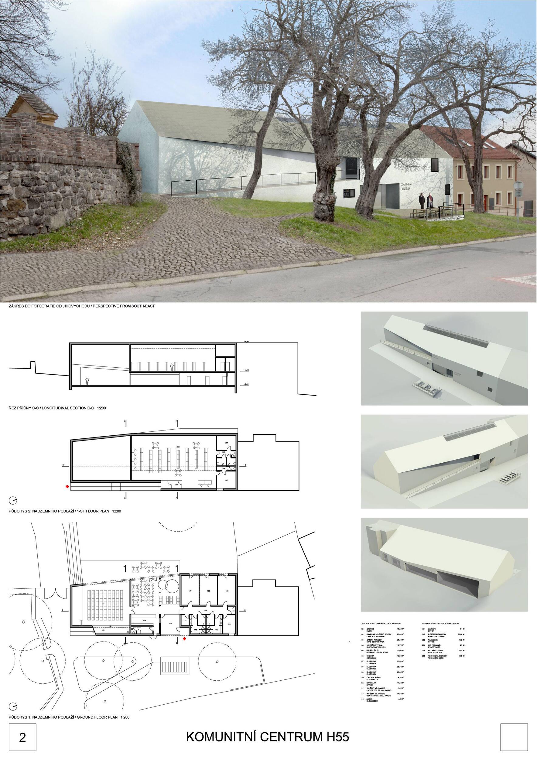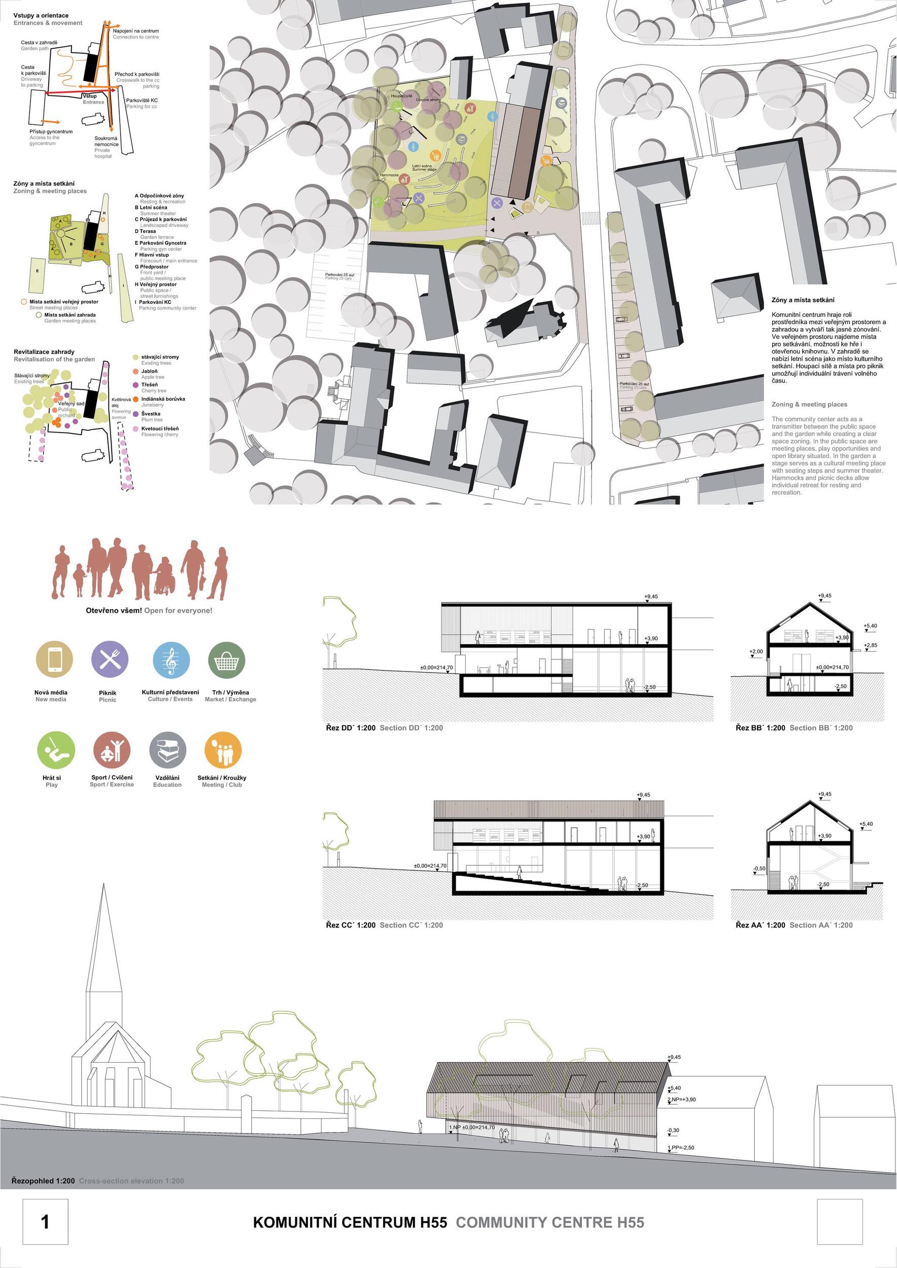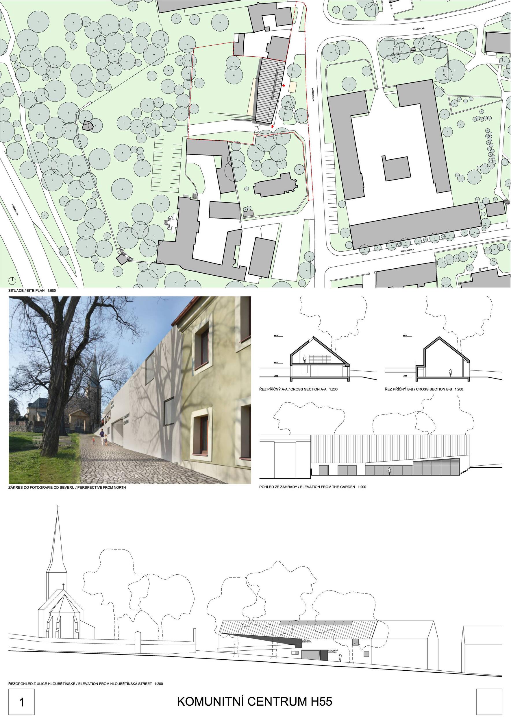 Porota ocenila přehledné dispoziční a hmotové řešení, které vtipně navazuje na původní parcelaci místa. Vnitřní uspořádání s plynule navazujícími prostory knihovny, kavárny a víceúčelového sálu umožňuje optimální návaznost i vhodný vizuální kontakt mezi těmito prostory navzájem i kontakt a aktivaci přilehlých venkovních prostor. Výtvarné pojetí je kultivované, i když poněkud schematické. Úprava venkovních prostor je jednoduchá a pádná a spolu s hmotovým řešením vhodně doplňuje místo i přiměřeně akcentuje přístup ke kostelu i do zahrady. Porota vnímá jako určitý nedostatek projektu jeho ne zcela zřejmé, zároveň však výtvarně silně exponované konstrukční řešení a doporučuje návrh v tomto smyslu zjednodušit. Z hlediska udržitelnosti porota oceňuje, že se jedná o jeden z mála návrhu, který pracoval s víceúčelovým sálem jako sezonním prostorem, čímž lez dosáhnout podstatných investičních úspor. Pochybnosti byly vysloveny o řešení fasád ve smyslu poměru prosklených a plných ploch.