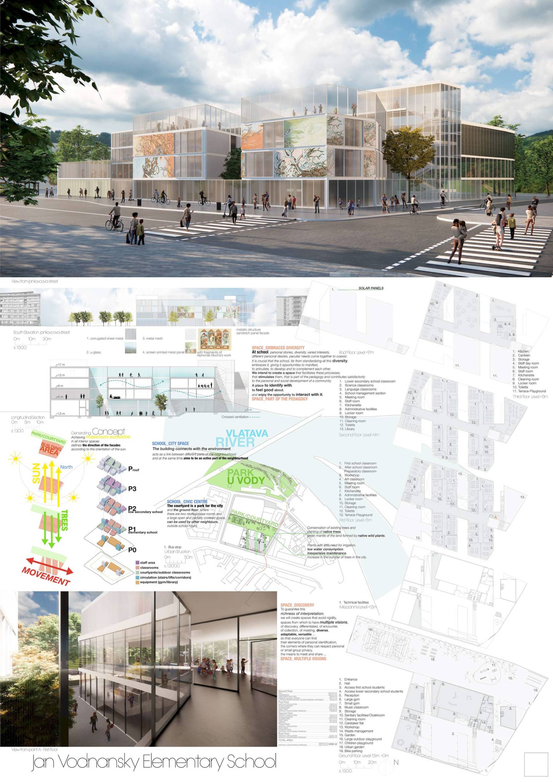 PROAM ARCHITEKTI / Václav Štojdl, David Šorm, Duc Pham Ngoc, Hana Kynčlová, Ondřej Fabián, Verónica Gallego Sotelo; vizualizace: ATELIÉR BRUNECKÝ; osvětlení: Petr Suchánek; statické řešení: Pavel Hladík (Hladík a Chalivopulos); PBŘ: Radim Staviař; energetický koncept: Libor Novák, Miroslav Zyma (Energy Benefit Centre); fyzický model: Pavel Táborský / Brno