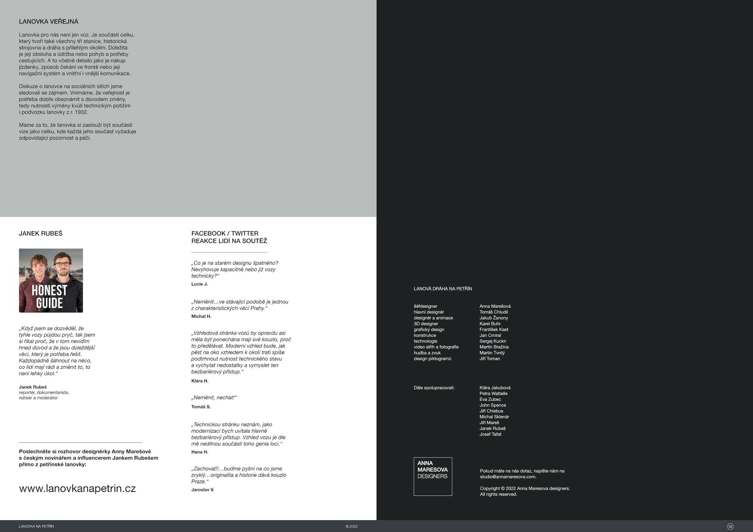 Anna Marešová designers / šéfdesigner: Anna Marešová; hlavní designér a 3D designer: Tomáš Chudil; designér a animace: Jakub Žanony; konstrukce: Jan Cmíral; technologie: Sergej Kuckir; grafický design: František Kast; design piktogramů: Jiří Toman; video střih a fotografie: Martin Bražina; hudba zvuk: Martin Hůla; spolupráce: Žaneta Vávrová, Klára Jakubová, Petra Wattelle, Eva Zubec, John Spence, Jiří Chlebus, Michal Sklenár, Jiří Mareš, Janek Rubeš, Josef Tafat / Praha2.místo