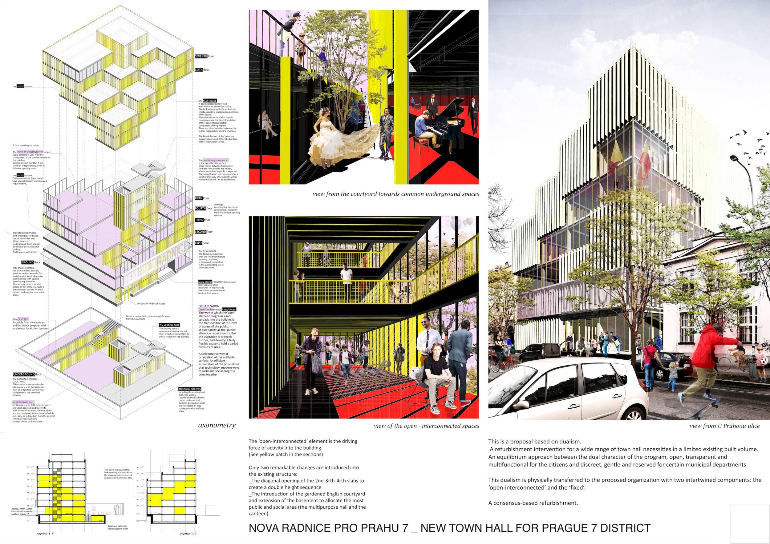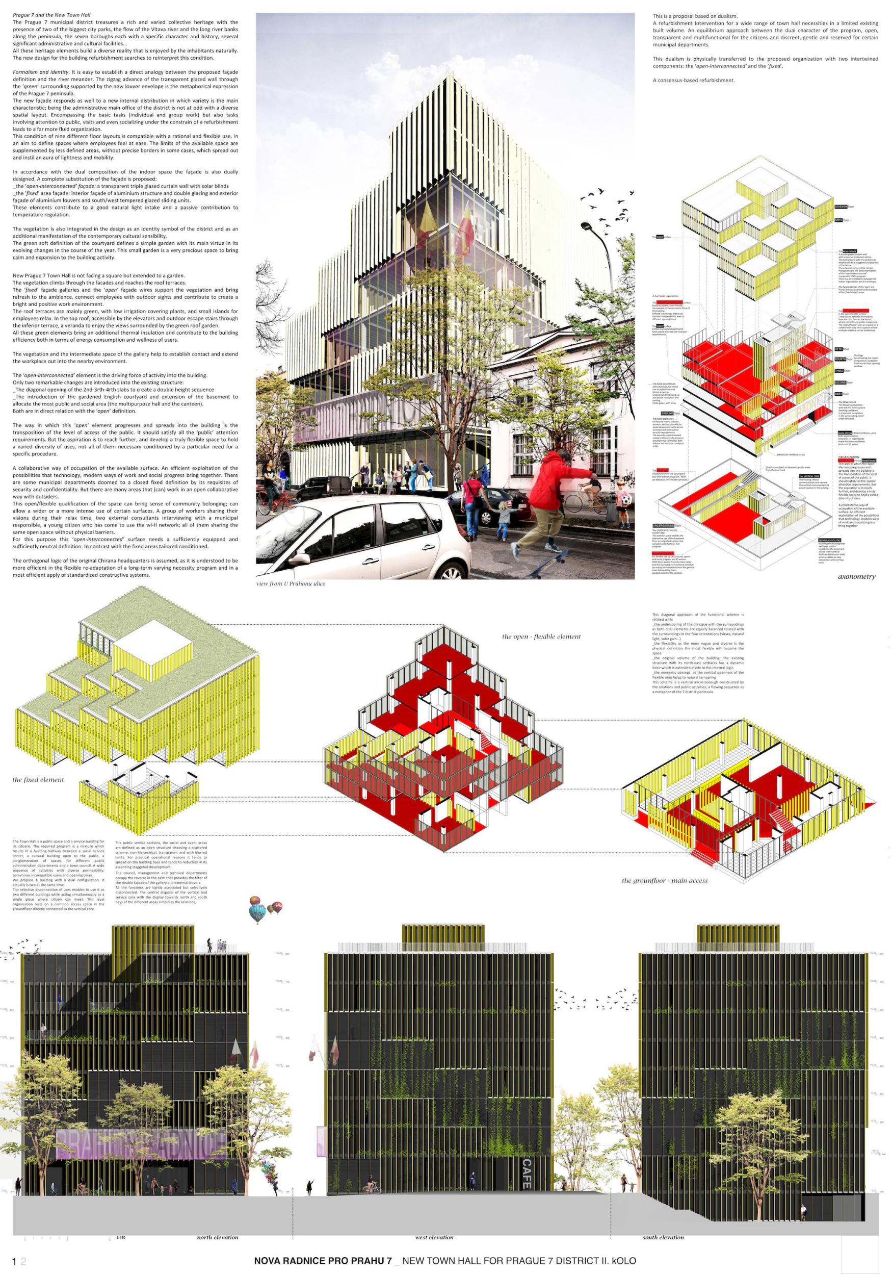 Porota na tomto návrhu hodnotí kladně zejména jednoduchost a jasný výraz, který přísluší právě veřejné budově a odůvodněné použití základního architektonického jazyka jako je kontrast mezi světlem a stínem, materialitou a lehkostí. Zároveň se jedná o přístup k rekonstrukci respektující stávající konstrukci i kontext, ve kterém se budova nachází. Porota má však výhrady ke ztvárnění obřadní síně, která by svým výrazem mohla být velkorysejší a odpovídat tak celkové architektuře budovy. Ačkoli se jedná o technologicky standardní projekt, je zde prostor, aby se mohl po energetické stránce dále rozvinout. Dopracování z hlediska technologií je také podmínkou realizace tohoto projektu, stejně jako zvážení lepší integrace obnovitelných zdrojů do konceptu budovy. Stejně důležité bude prozkoumání stávající konstrukce, možnosti jejího odhalení a koexistence tohoto přístupu s nutným technickým zařízením budovy.