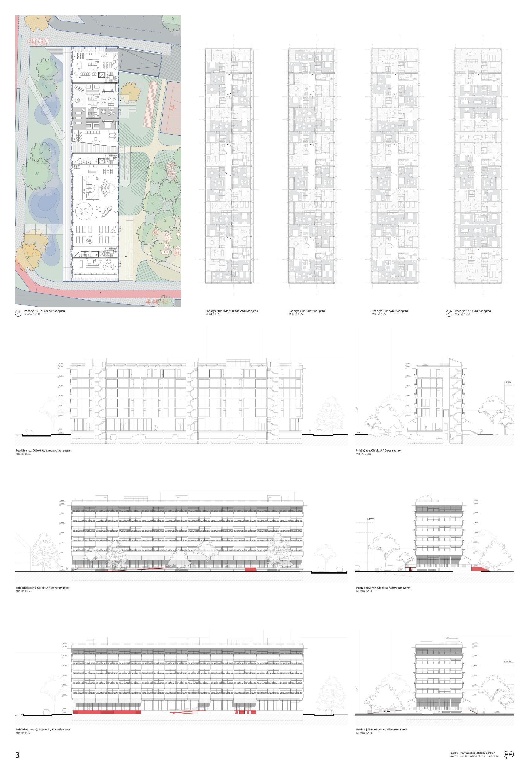 Architektonická kvalita Návrh je na velmi vysoké architektonické, koncepční a provozní úrovni. Architektonická kvalita je zřetelná a srozumitelná, návrh vykazuje kvalitní funkční a materiálové řešení. Provozní schéma je přehledné a logicky strukturované, s kvalitním vyřešením vztahu mezi veřejnými, soukromými a technickými částmi. Stavba umožňuje uživatelskou přístupnost a je navržena pro celoroční užívání v souladu s principy udržitelnosti. Komise ocenila i čitelný architektonický jazyk a výraz, který návrhu dodává identitu a zároveň zachovává uživatelskou vstřícnost. Velmi pěkný návrh pro bydlení se slibným scénářem opětovného využívání materiálu. Řešení parkování by mělo být upraveno, stejně jako pozice objemu realizovaného v 2. fázi. Koncept technologického a provozního řešení Technologické řešení je optimalizované, odpovídá formě užívání a je pevně propojeno s architektonickým řešením. Návrh je nadčasový, funkční a nevytváří kompromisy vůči architektonické kvalitě. Výše stavebně-investičních nákladů Odhadované náklady odpovídají rozsahu návrhu a působí realisticky. Komise ocenila jejich přiměřenost vůči architektonickým ambicím a celkové efektivitě návrhu. Zadavatel si je vědom, že soutěžní návrhy nemohou přesně stanovit investiční náklady a že tyto budou upřesněny v dalších fázích zpracování projektové dokumentace s vybraným dodavatelem.