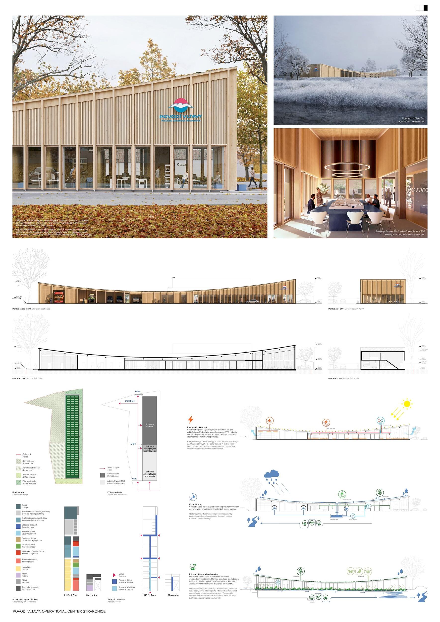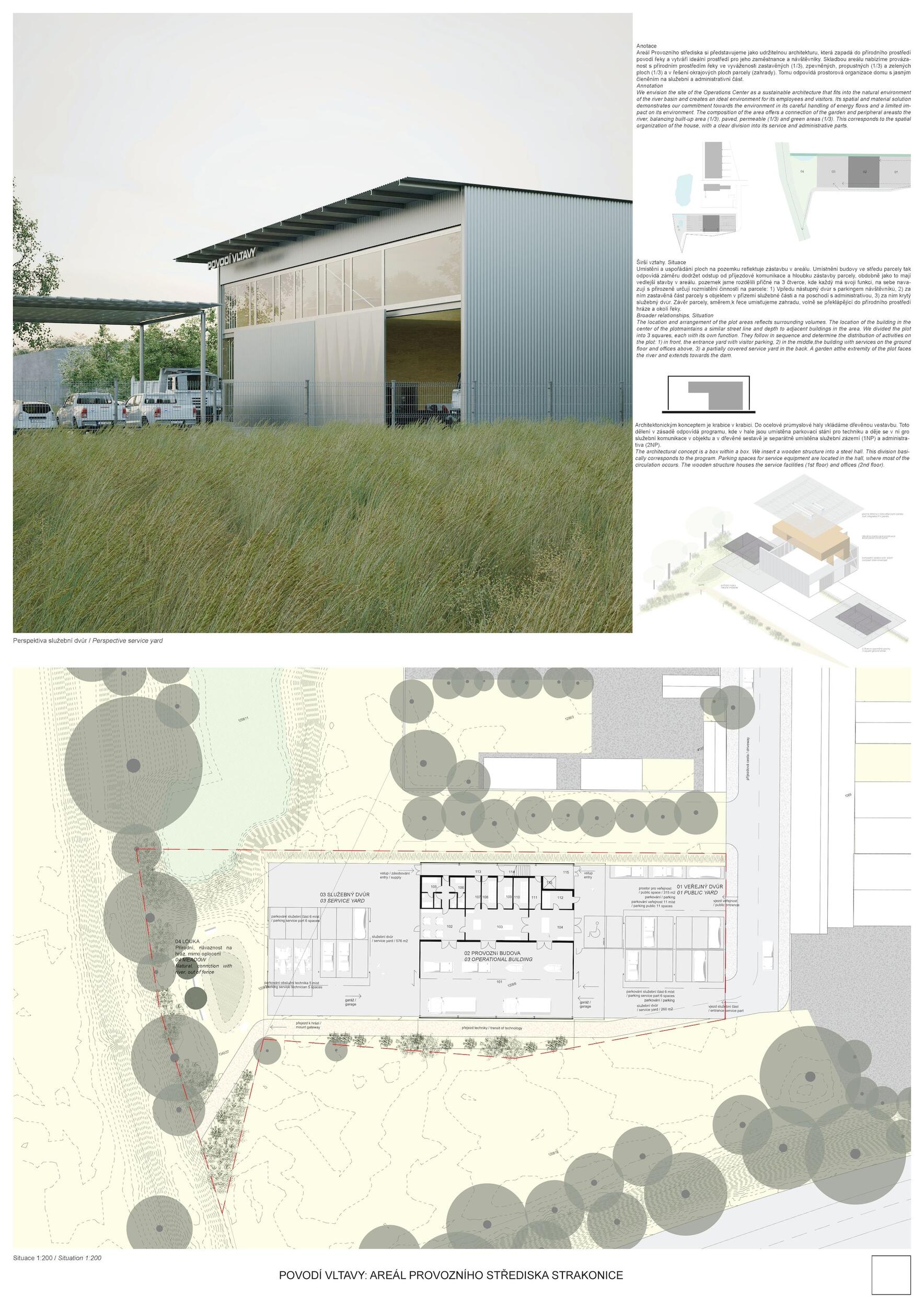 Vítězný návrh nového provozního střediska Povodí Vltavy ve Strakonicích je příkladem kvalitní práce s funkčním členěním, principy udržitelnosti, materiály a světlem v interiéru. Důstojný a reprezentativní objekt není okázalý a vytváří dojem jisté přirozenosti, například nenuceně vytvořených parkovacích ploch. Porota oceňuje provázání s řekou, které umožňuje výhledy. Objekt je dobře zasazen do svého okolí, nestaví se zády ani k silnici ani k řece a nabízí uživatelům přívětivé prostředí a kvalitní pracovní zázemí.