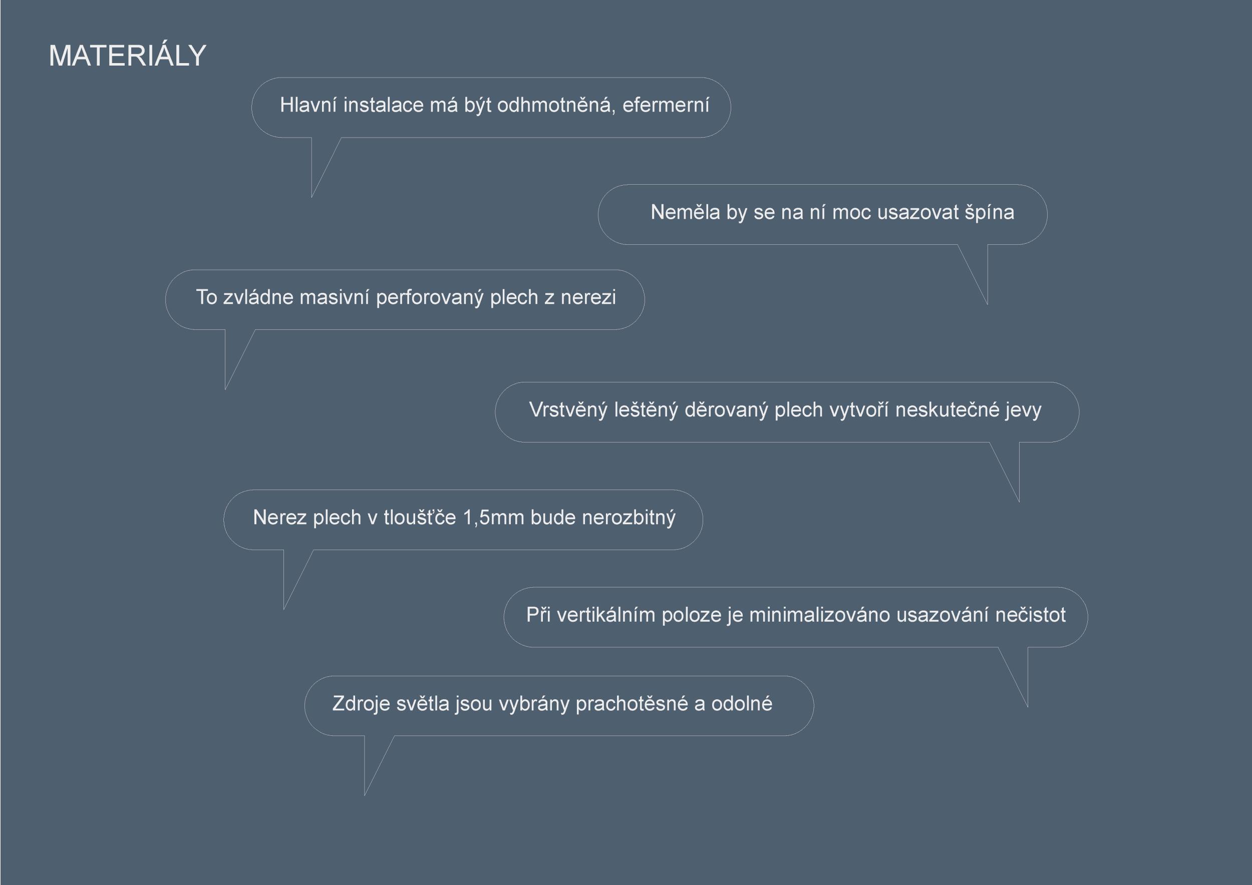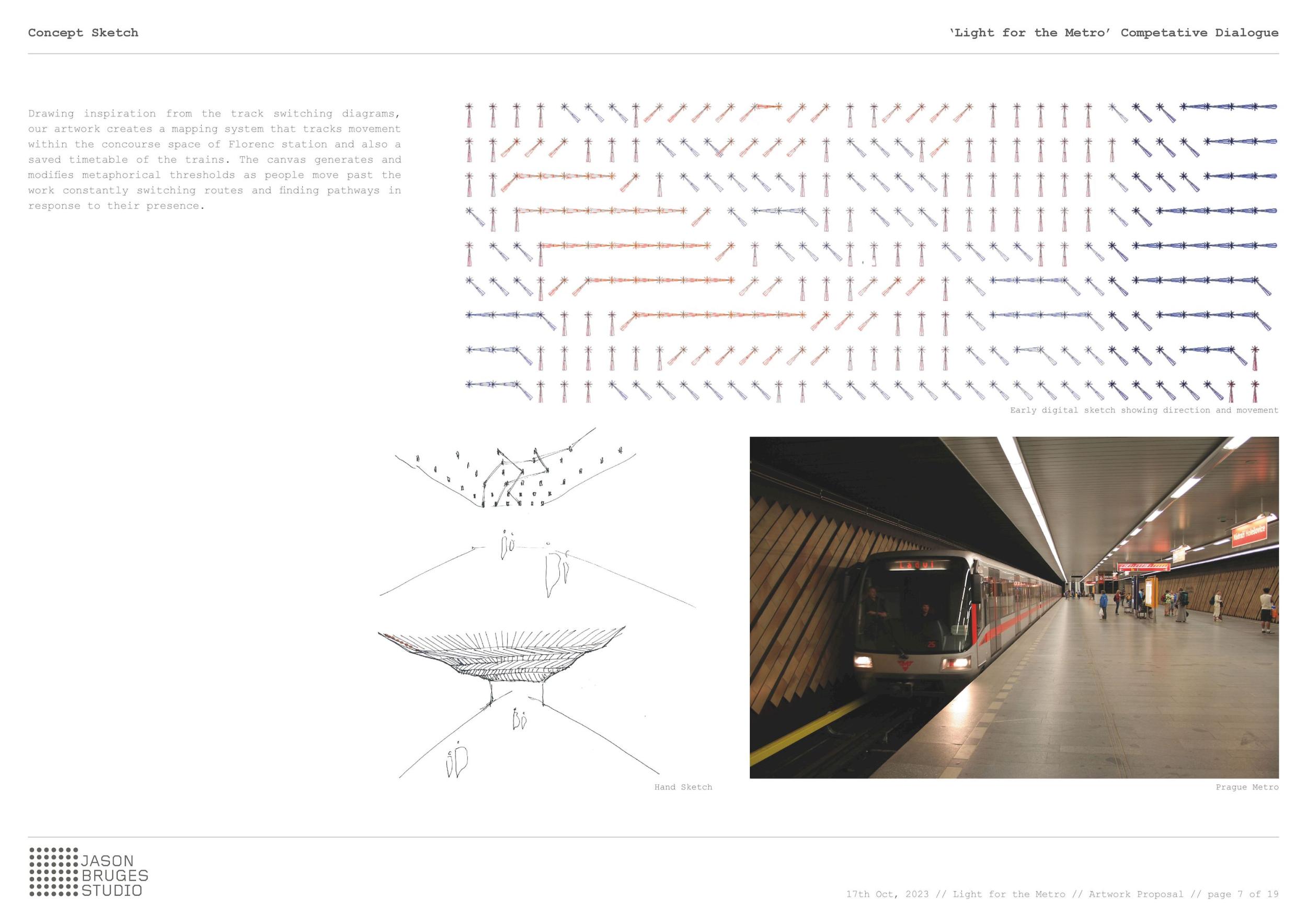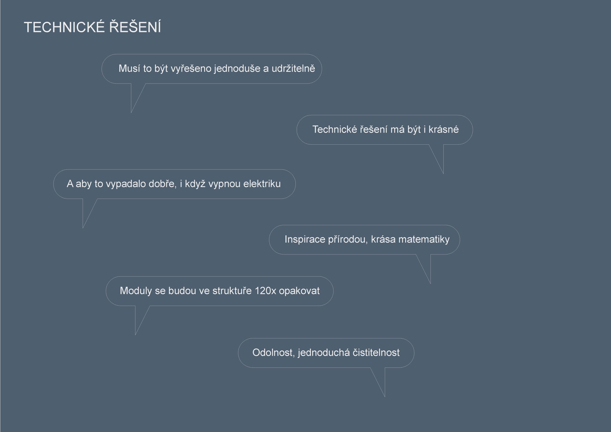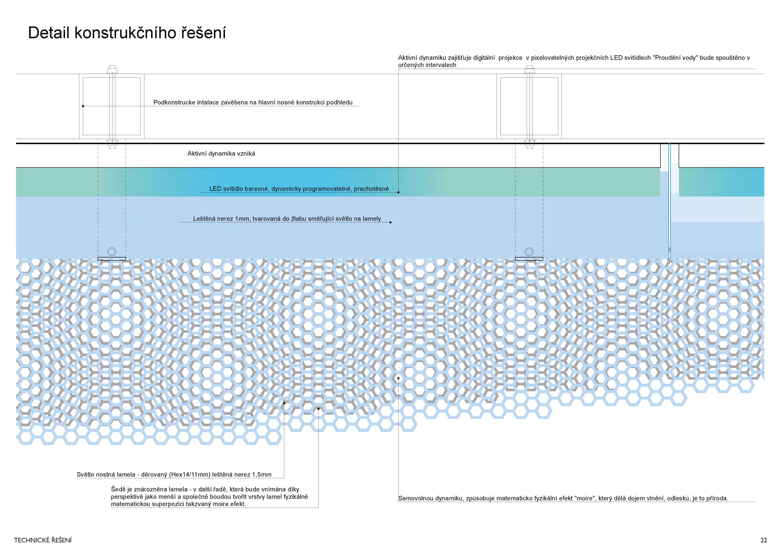 Komise hodnotí velice kladně čitelnou symboliku uměleckého záměru založenou na interpretaci urbánní konektivity, ať už mezilidské nebo infrastrukturální. Propracovanost návrhu instalace a snaha o maximální zjednodušení realizace, jakož i významný posun od prvního konceptu k finálnímu odevzdání, ukazuje na silný tým, ve kterém se povedly skloubit umělecký i pragmatický přístup k zadání. V elementech díla komise vnímá jistou recyklaci předchozí autorovy tvorby. Jejich konfigurace a vyznění však v kontextu dopravní stavby a prostoru s mnoha tisíci procházejícími cestujícími povede k unikátnímu impaktu. Navržené technické parametry řešení jsou věrohodně popsané a dílo dobře realizovatelné a udržovatelné i v náročném prostředí veřejné části komplexu metra. Předpokládá se dopracování ukotvení nosné konstrukce, které by však nemělo představovat ani změnu v tom, jak dílo vypadá, ani velkou úpravu nákladů. Doporučení komise – prověřit vhodnou barevnost a intenzitu světel – autor sám předjímá v popisu ovládacího programu, kde deklaruje také možnost nastavení rychlosti změn i rozsah větvení. Technologie a umění zde koncepčně fungují jako jeden koherentní celek. Celkové náklady jsou dle názoru komise reálné, a to jak poměr mezi náklady na dopracování návrhu a jeho realizaci, tak samotná výše investice.
