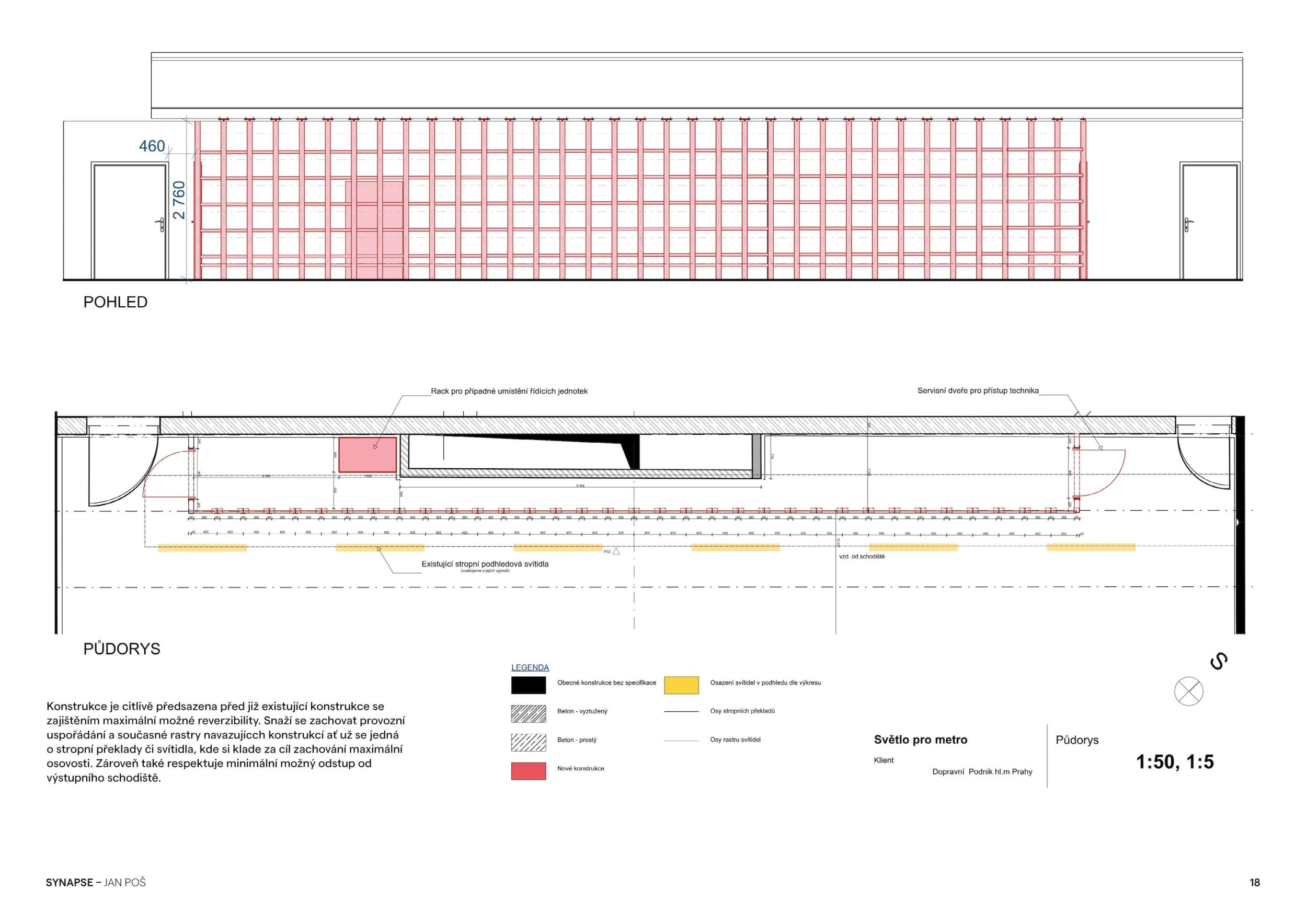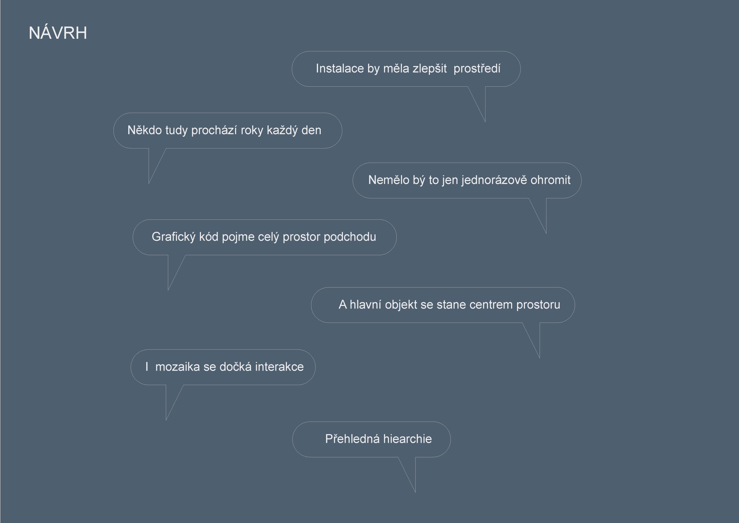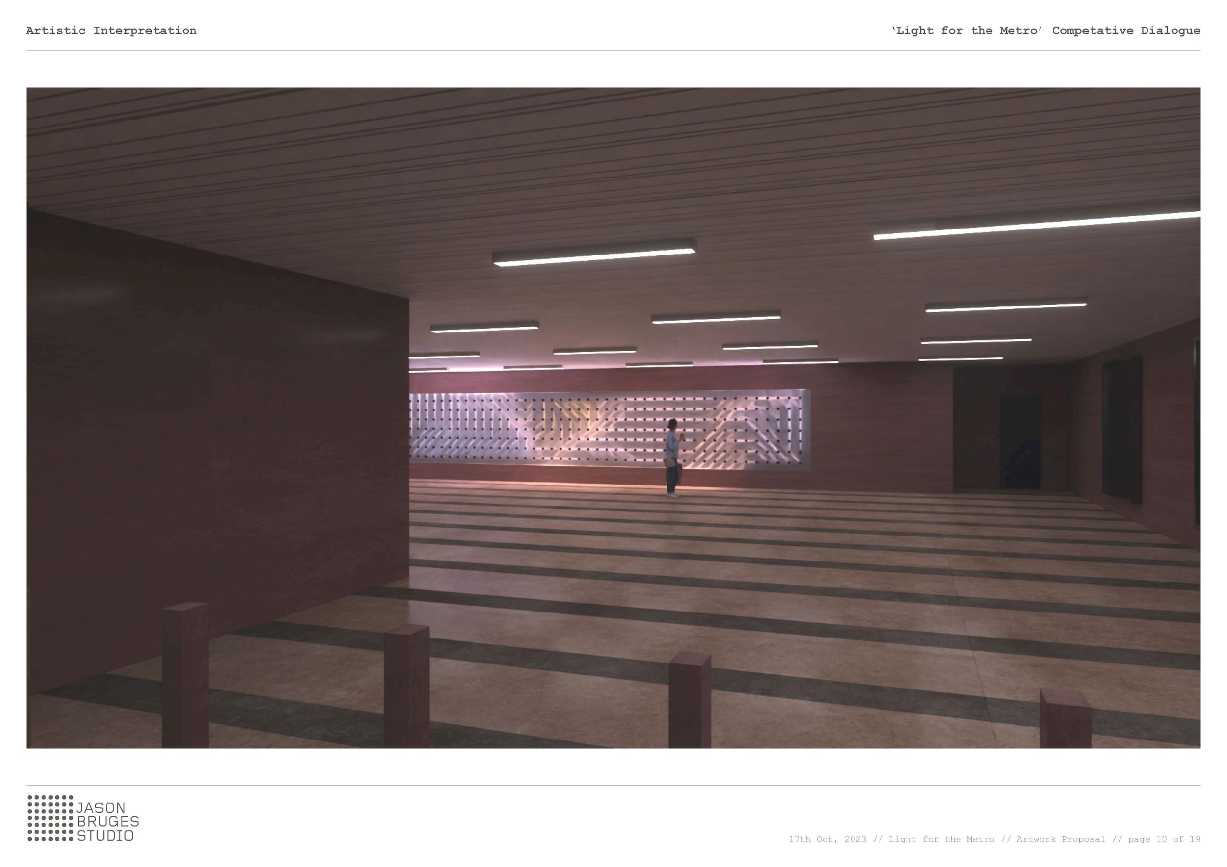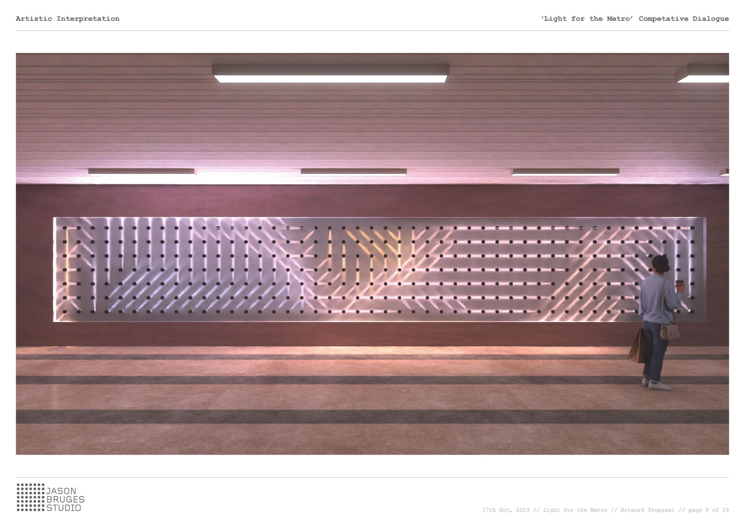 Komise hodnotí velice kladně čitelnou symboliku uměleckého záměru založenou na interpretaci urbánní konektivity, ať už mezilidské nebo infrastrukturální. Propracovanost návrhu instalace a snaha o maximální zjednodušení realizace, jakož i významný posun od prvního konceptu k finálnímu odevzdání, ukazuje na silný tým, ve kterém se povedly skloubit umělecký i pragmatický přístup k zadání. V elementech díla komise vnímá jistou recyklaci předchozí autorovy tvorby. Jejich konfigurace a vyznění však v kontextu dopravní stavby a prostoru s mnoha tisíci procházejícími cestujícími povede k unikátnímu impaktu. Navržené technické parametry řešení jsou věrohodně popsané a dílo dobře realizovatelné a udržovatelné i v náročném prostředí veřejné části komplexu metra. Předpokládá se dopracování ukotvení nosné konstrukce, které by však nemělo představovat ani změnu v tom, jak dílo vypadá, ani velkou úpravu nákladů. Doporučení komise – prověřit vhodnou barevnost a intenzitu světel – autor sám předjímá v popisu ovládacího programu, kde deklaruje také možnost nastavení rychlosti změn i rozsah větvení. Technologie a umění zde koncepčně fungují jako jeden koherentní celek. Celkové náklady jsou dle názoru komise reálné, a to jak poměr mezi náklady na dopracování návrhu a jeho realizaci, tak samotná výše investice.