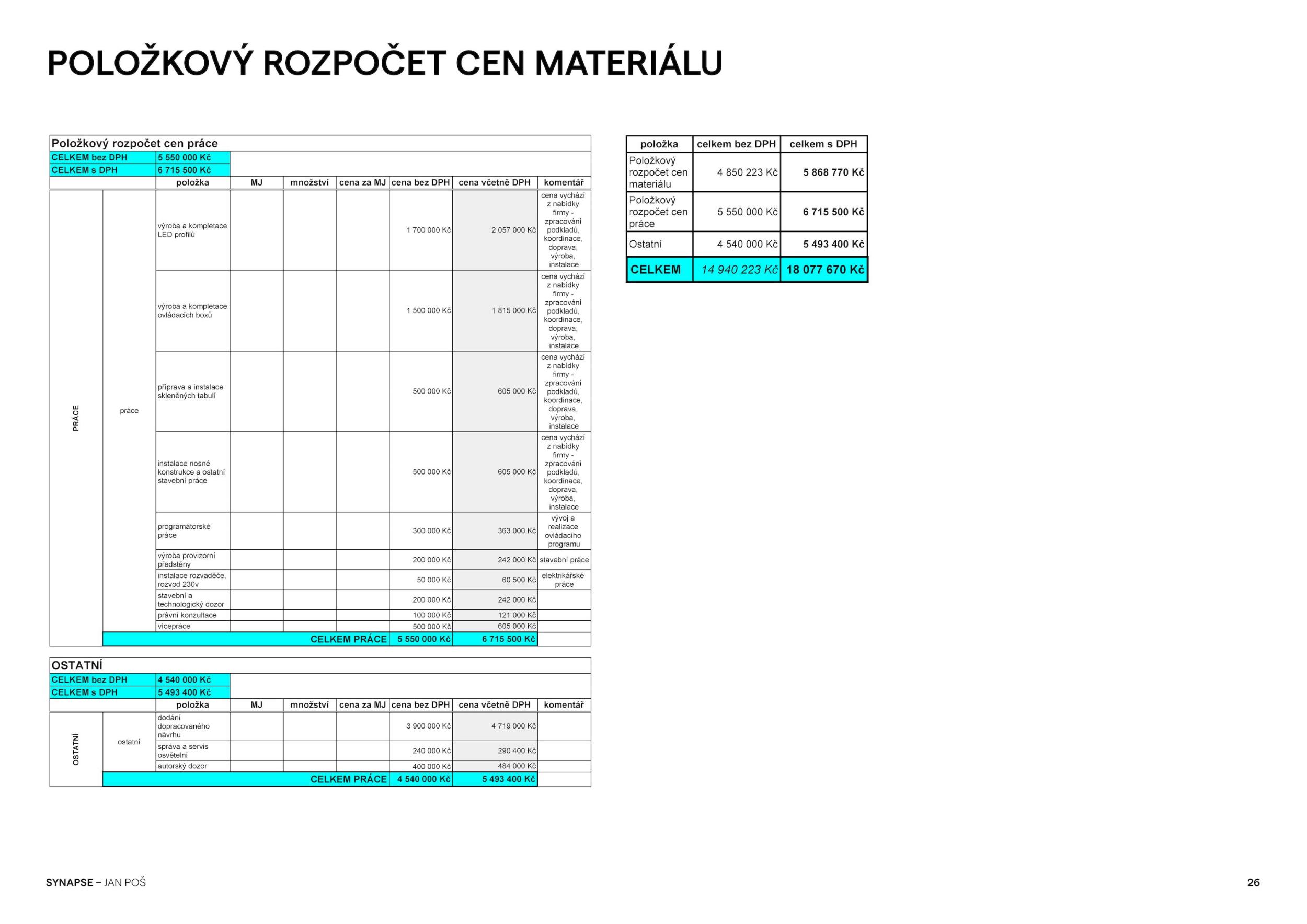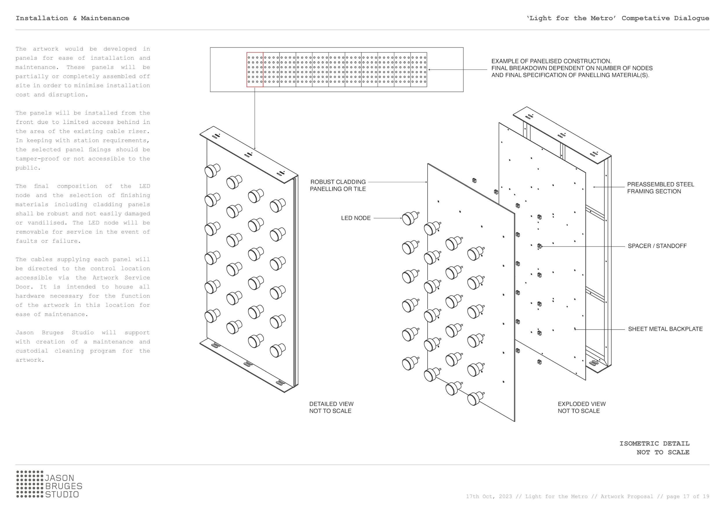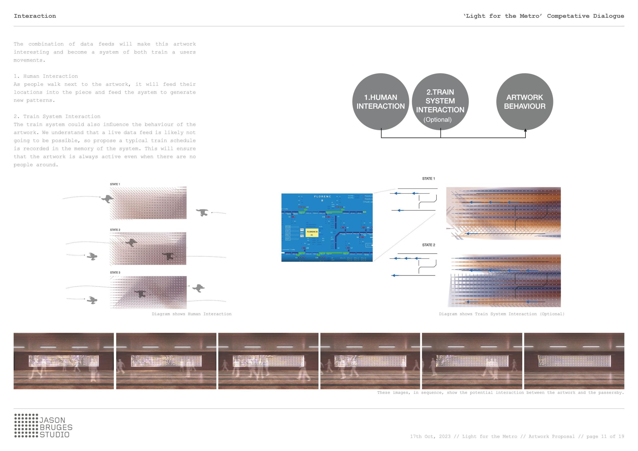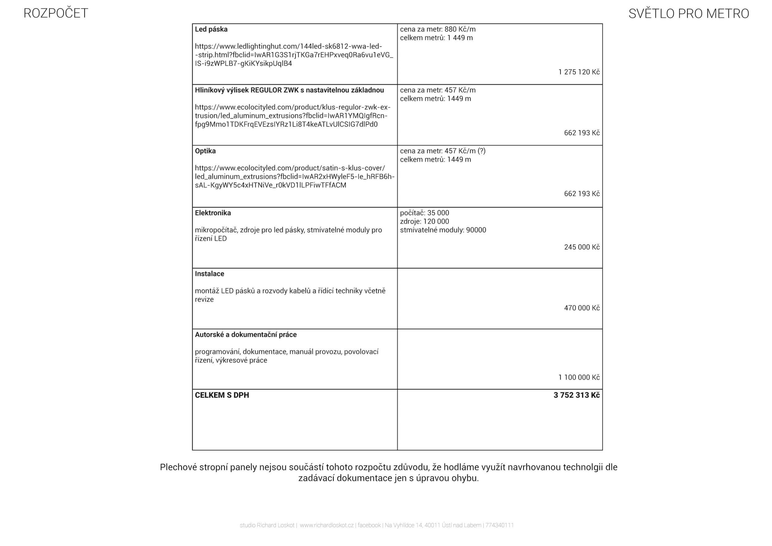 Komise hodnotí velice kladně čitelnou symboliku uměleckého záměru založenou na interpretaci urbánní konektivity, ať už mezilidské nebo infrastrukturální. Propracovanost návrhu instalace a snaha o maximální zjednodušení realizace, jakož i významný posun od prvního konceptu k finálnímu odevzdání, ukazuje na silný tým, ve kterém se povedly skloubit umělecký i pragmatický přístup k zadání. V elementech díla komise vnímá jistou recyklaci předchozí autorovy tvorby. Jejich konfigurace a vyznění však v kontextu dopravní stavby a prostoru s mnoha tisíci procházejícími cestujícími povede k unikátnímu impaktu. Navržené technické parametry řešení jsou věrohodně popsané a dílo dobře realizovatelné a udržovatelné i v náročném prostředí veřejné části komplexu metra. Předpokládá se dopracování ukotvení nosné konstrukce, které by však nemělo představovat ani změnu v tom, jak dílo vypadá, ani velkou úpravu nákladů. Doporučení komise – prověřit vhodnou barevnost a intenzitu světel – autor sám předjímá v popisu ovládacího programu, kde deklaruje také možnost nastavení rychlosti změn i rozsah větvení. Technologie a umění zde koncepčně fungují jako jeden koherentní celek. Celkové náklady jsou dle názoru komise reálné, a to jak poměr mezi náklady na dopracování návrhu a jeho realizaci, tak samotná výše investice.